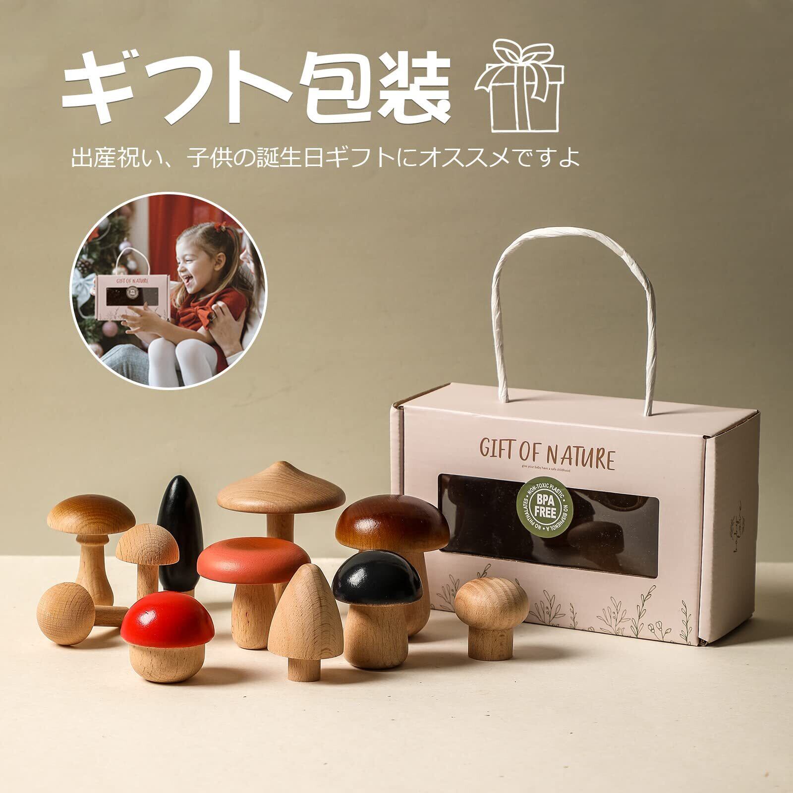let's make 積み木 木製おもちゃ キノコシリーズ木製のおもちゃ 木製玩具 知育玩具 子供 幼児 おもちゃ 誕生日 保育園 入園祝い 贈り物 出産祝い ギフト 11点セット ギフト包装
