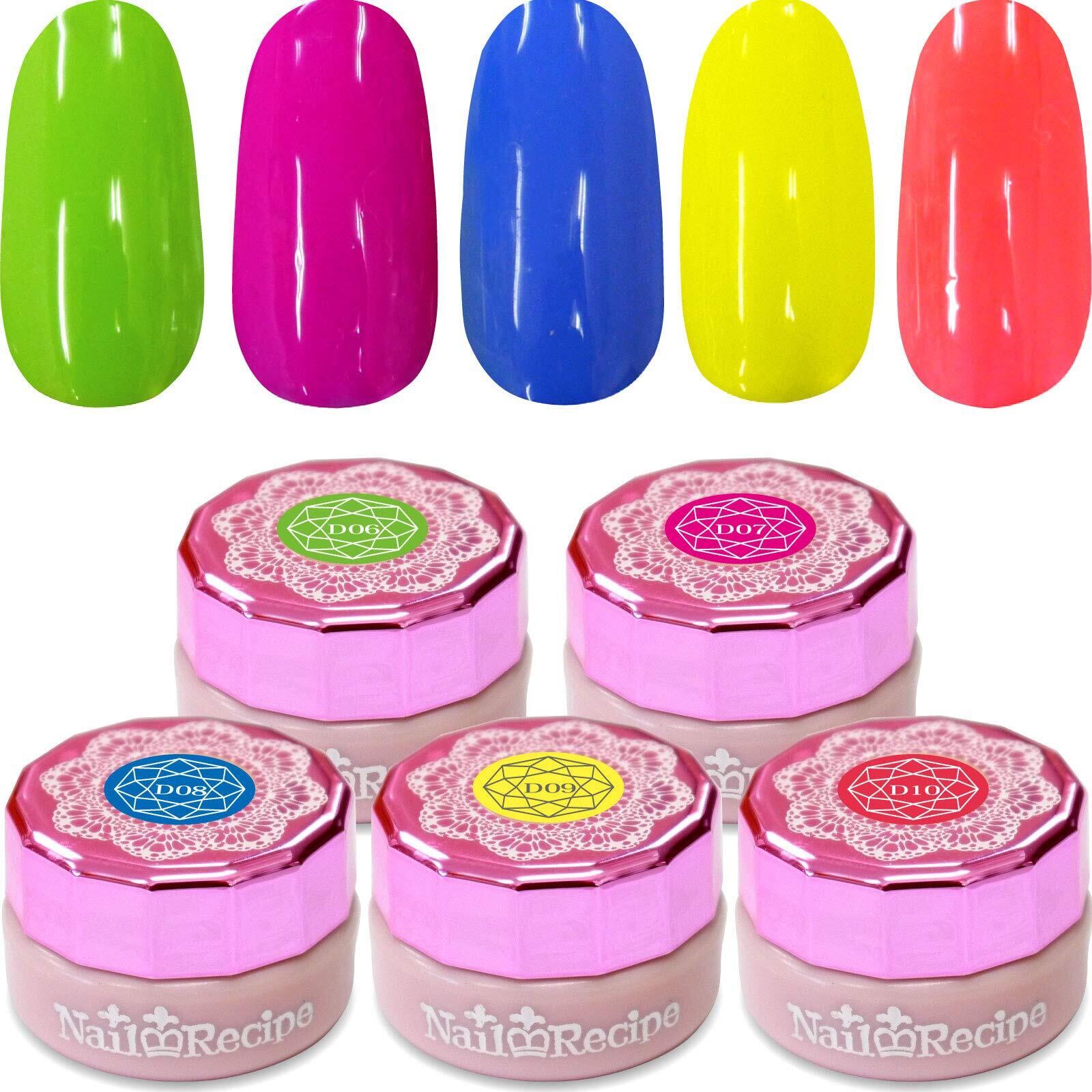 [NailRecipe(ネイルレシピ)] ネイル ジェルネイル カラージェル 5色セット 発色 お花のように可愛いカラージェル (ネオンD6-10)