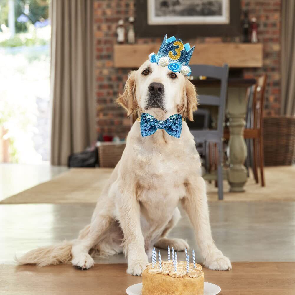 【特価商品】犬 誕生日 帽子 蝶ネクタイ 犬 猫用 誕生日グッズ 誕生日帽子 3点セット バースデー帽子 ペット用誕生日帽子 王冠 数字付き クラウン きらきら バースデーハット 飾り付け ペット 帽子 誕生日ハット(ブルー) | impsmile