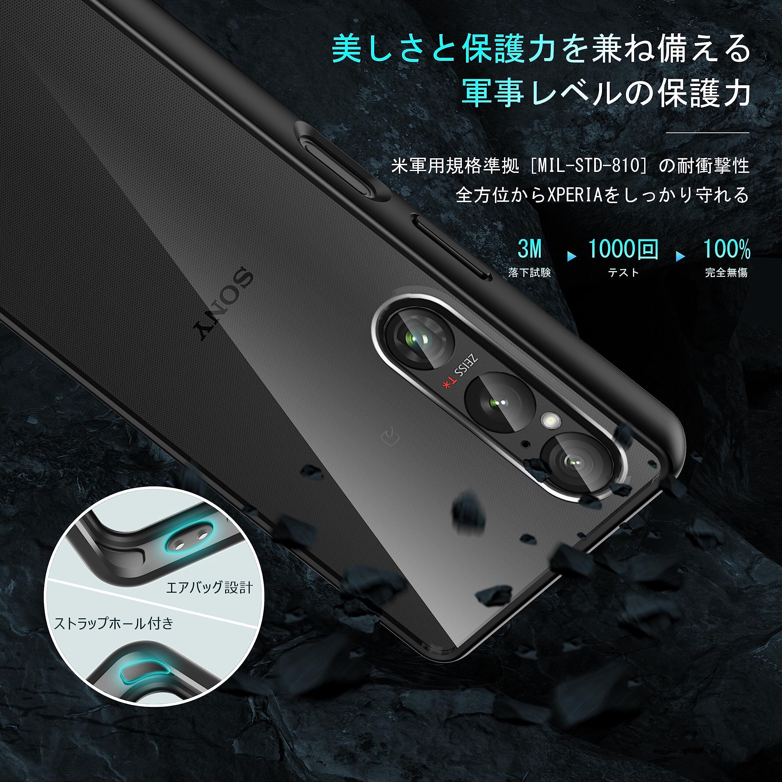 SONY Xperia 1 V 用 ケース クリア [SO-51D / SOG10] 耐衝撃 米軍MIL規格取得 SGS認証 黄ばみなし レンズ保護 滑り止め 指紋防止 ストラップホール付き エクスペリア1V 用カバー Crystal Series