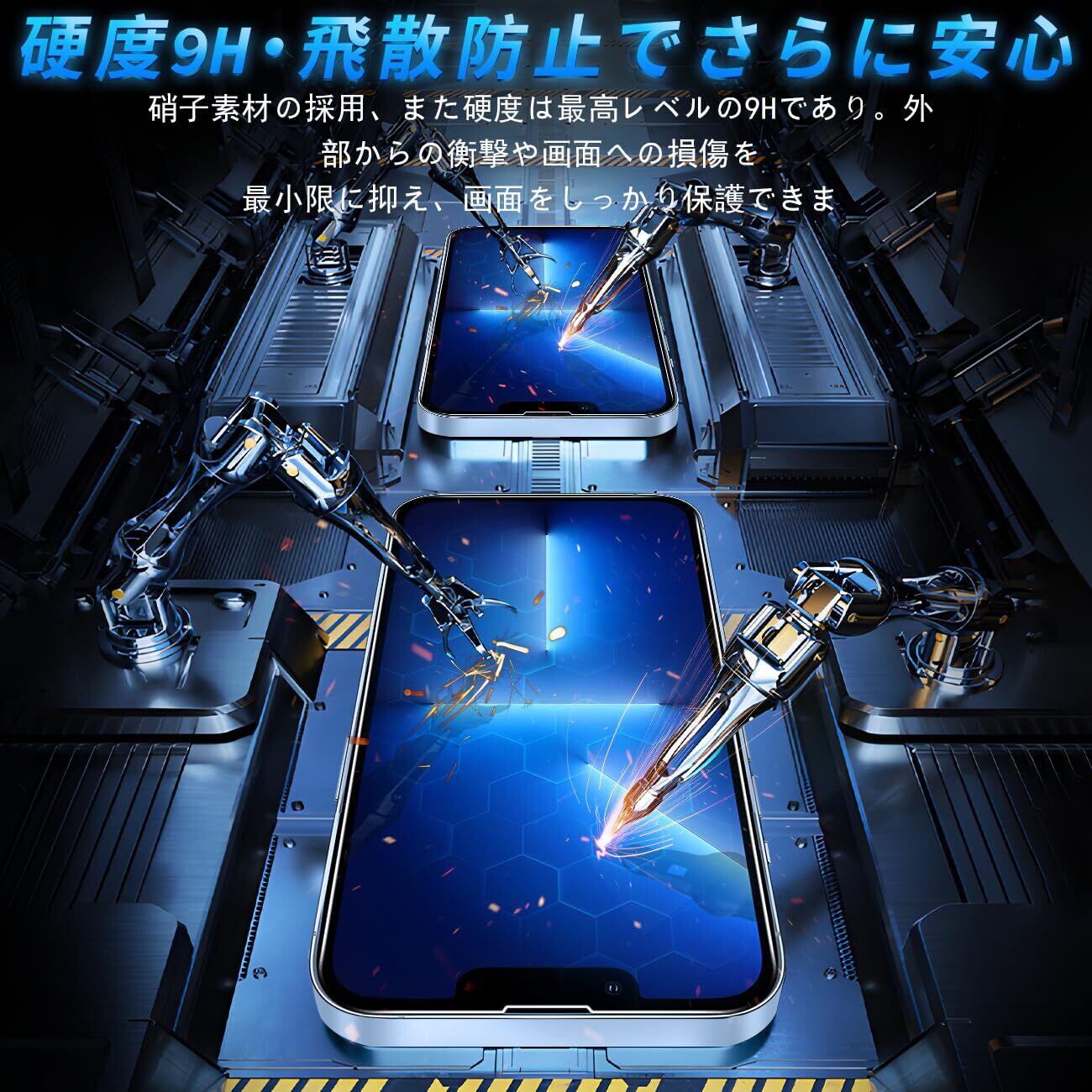 【高品質の材料の9H硬度】とレンズ保護フィルムはすべて旭硝子で作られており、スマホ保護フィルムの中で最高レベルの9H硬度に達しています、4.5時間以上の高温焼入れ処理を行い、スクリーンプロテクターの圧強度は 125mpa に達し、通常 ガラス の 5 倍になりました。しかもスクリーンプロテクターは衝撃を抑えるシリコンコーティングを内蔵しており、万が一ガラスが割れても、ガラスの破片が飛散しません。ハードコーティング技術は、衝撃を最小限に抑えて画面の破損を抑え、すり傷防止や指紋防止もしっかりとスクリーンを保護します。*大切な携帯電話の液晶画面を保護し、衝撃や表面のキズを防止します。