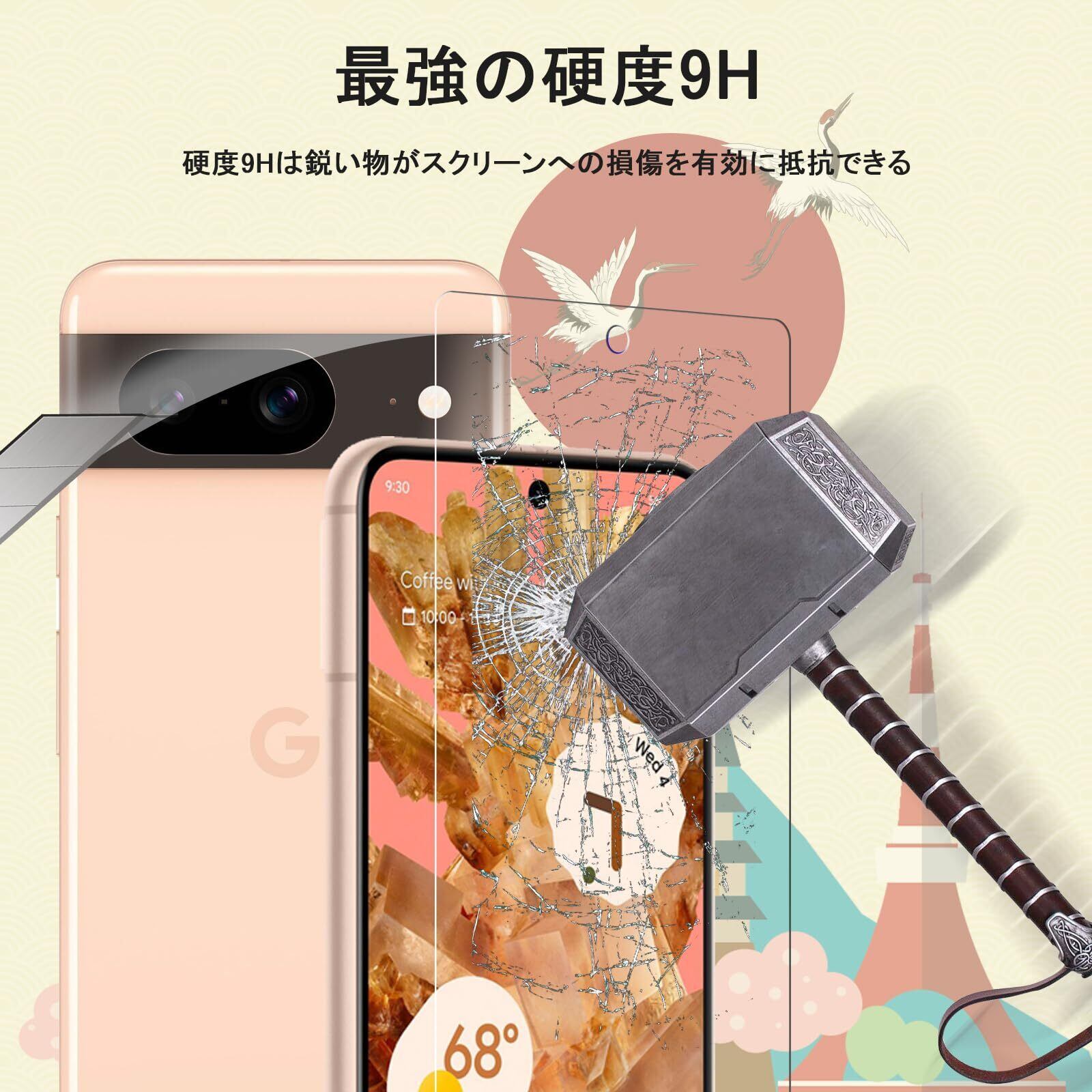 Besecou ガラスフィルム Google Pixel 8 用 2枚 + カメラフィルム 2枚 旭硝子素材製 【指紋認証対応】【ガイド枠付き】強化ガラス 液晶保護 9H硬度 耐衝撃 気泡防止 高感度タッチ 指紋防止 防水撥油 飛散防止 ピクセル 8 対応