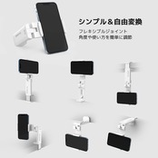 【角度自由自在】上部のスマホ固定用のクリップは360°回転可能で、後ろへ折れば290°まで開けます。場所によって好きな角度に変更し、スマホの縦置きも横置きも設置可能です。