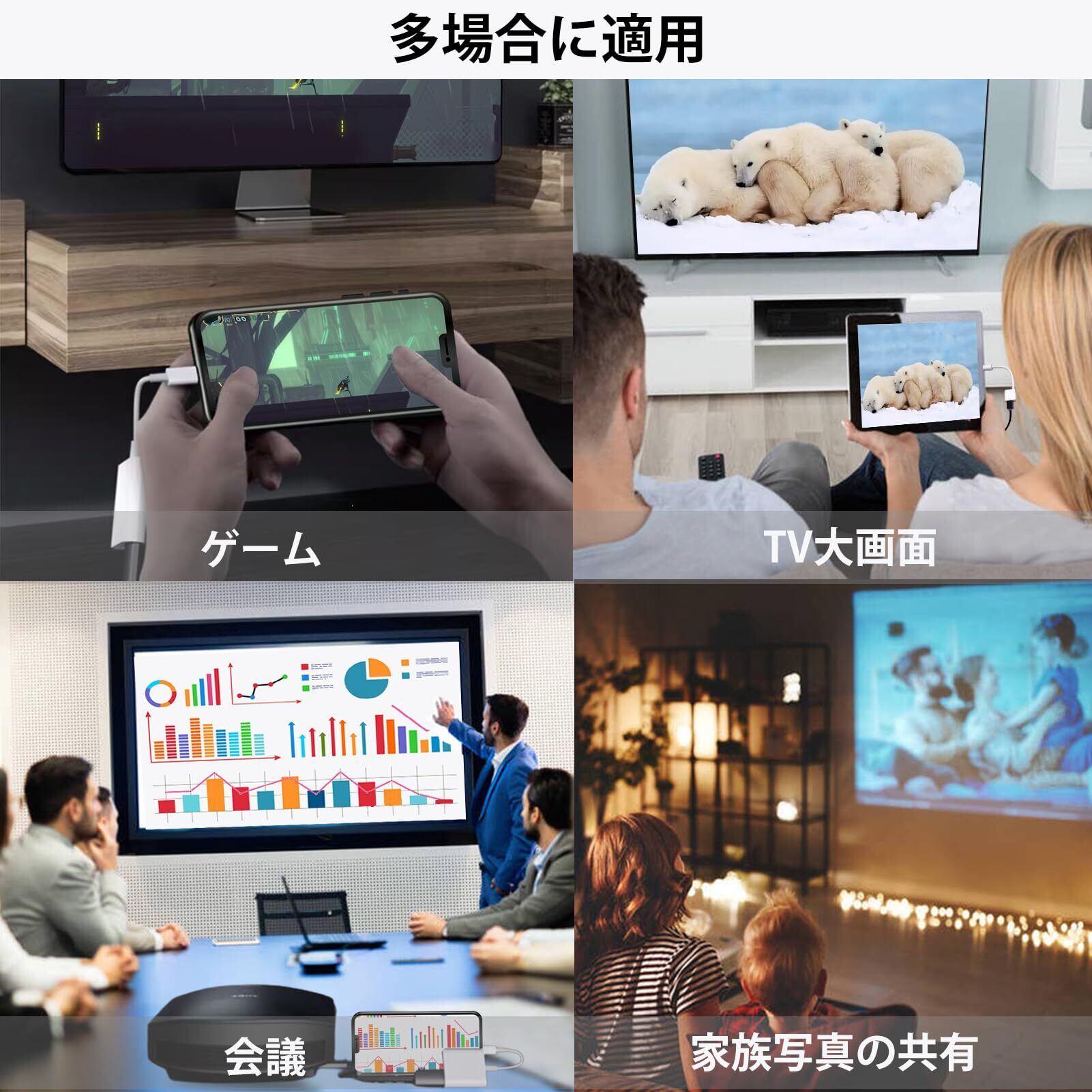 【1080P - 高解像度】iPhone HDMI 変換アダプターはLine、FaceTime、Skype、WhatsupAppのビデオ通話をサポートし、1080Pの高解像度映像とクリアな音声を同時にiPhone画面からテレビに転送します。会議、プレゼンテーション、パーティー、ゲーム、映画鑑賞など、幅広い用途で活躍します。認証済みのLightning端子を使用して、長時間の安定した同期とミラーリングを実現し、鮮明な画質をします。