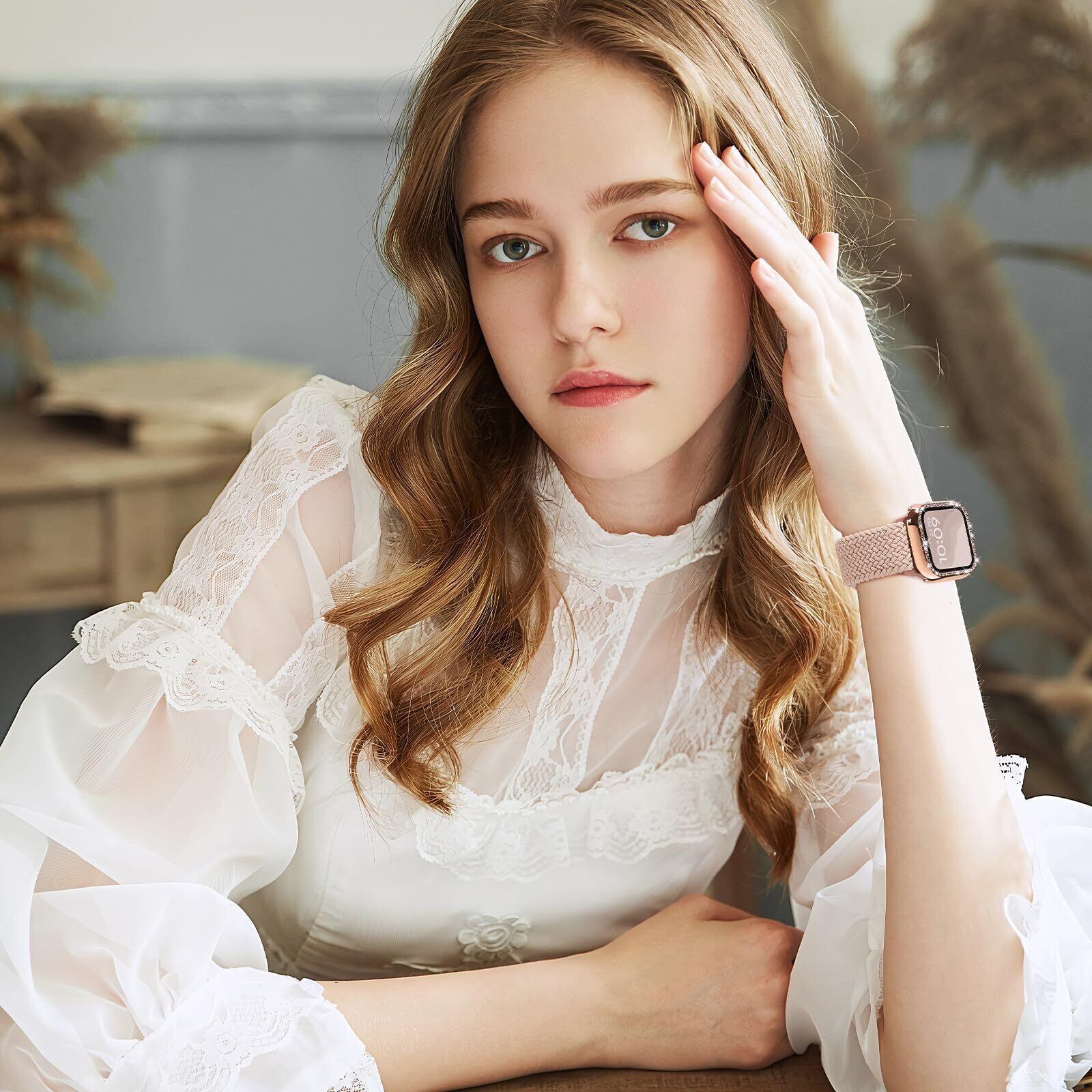 【全面的な保護】アップルウォッチ ケース付きバンド、カラーマッチ編み込みデザインがスタイリッシュな外観を演出。アップルウォッチ カバー キラキラ日常のスクラッチ・水はね・衝突から時計の縁辺部と画面を保護します。