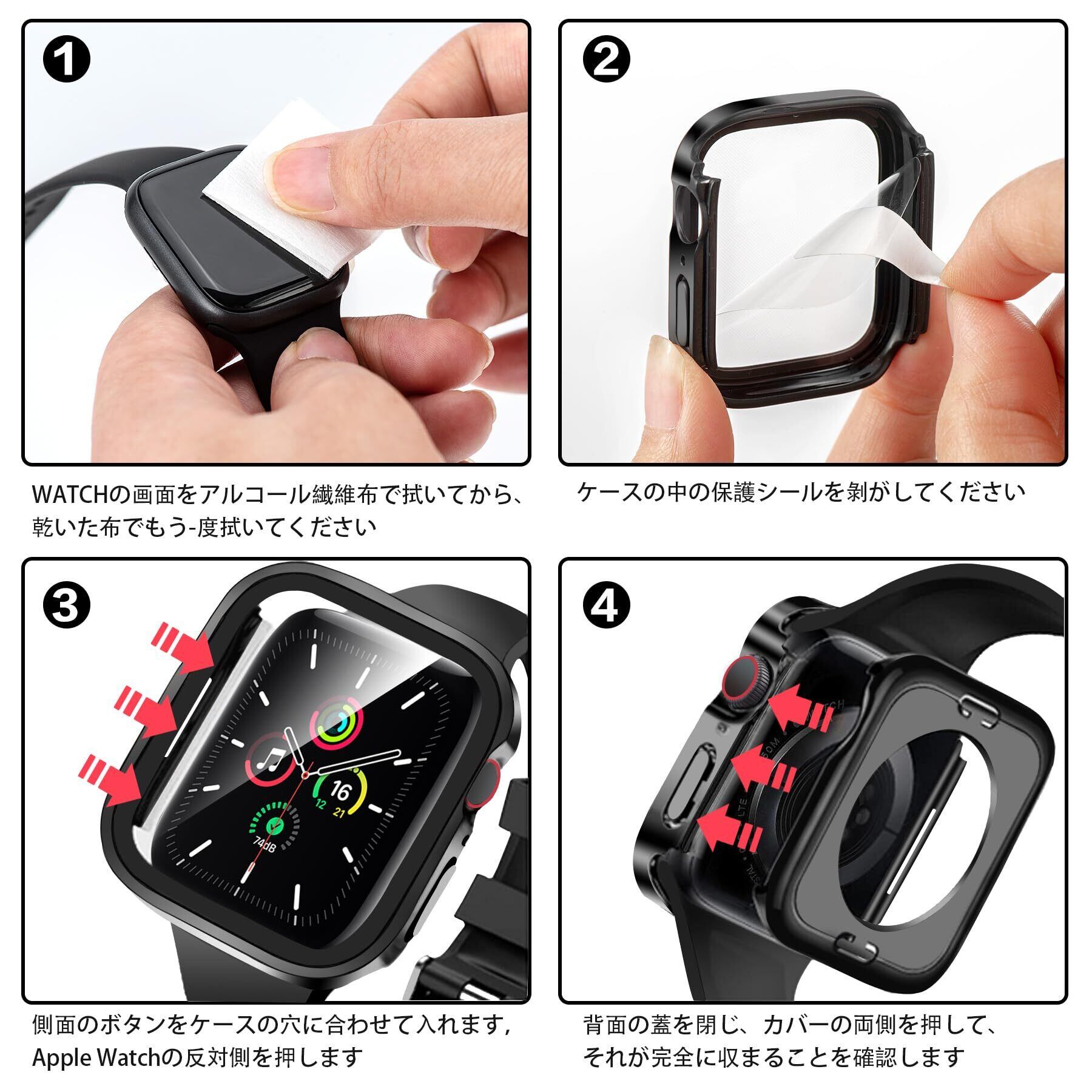 【防水・防塵ケース】シーリングリング内蔵したアッApple Watch ケース、アップルウォッチの画面にぴったりとフィットし、アップルウォッチ前面カバーと背面カバーの2 in 1全周保護設計で,表面から裏面まで 360度の全面保護します、IP67防水、防塵設計。ケースを取り外して水を拭くすることを繰り返す必要はありません。疎水性撥油性抜群の強化ガラス表面により、カバー面に水が溜まらず、シャワー、手洗い、発汗、運動、雨など、日常の使用に適しています。 ※ご注意:ウォッチの画面とカバーの間に水が浸入する場合、保護カバーを取り外し、柔らかい布で水を乾かしてください。