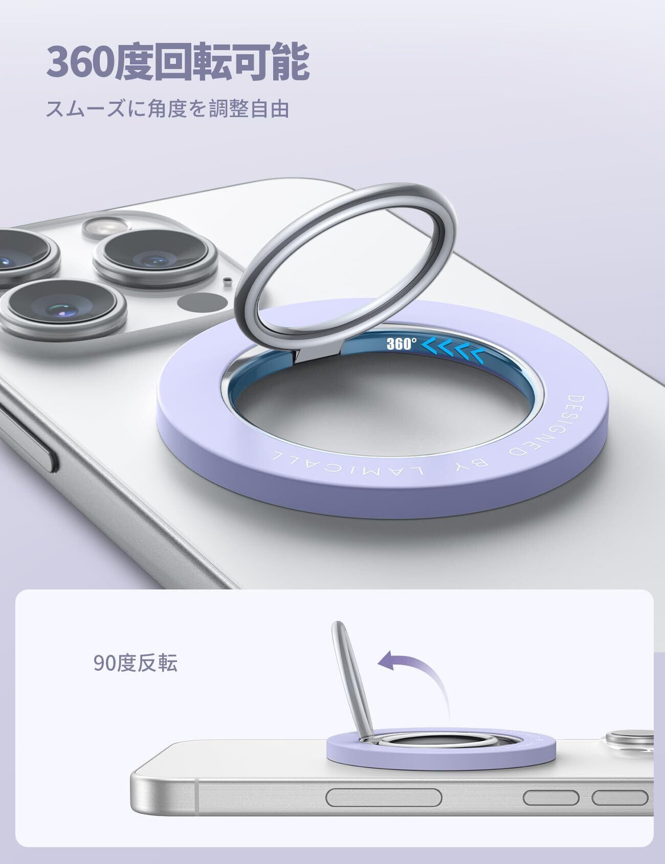 【特価商品】Lamicall MagSafe対応 360度回転式 スマホリング : マグネット式 携帯電話 ホルダー リング マグセーフ バンカーリング 角度調整 スタンド 磁気増強 メタルリング付き 取り外し Magnetic Phone Grip iPhone 2024 iPhone 16 16 Plus 16 pro 16 pro max iphone 15/14/13 Android に対応 パープル | impsmile