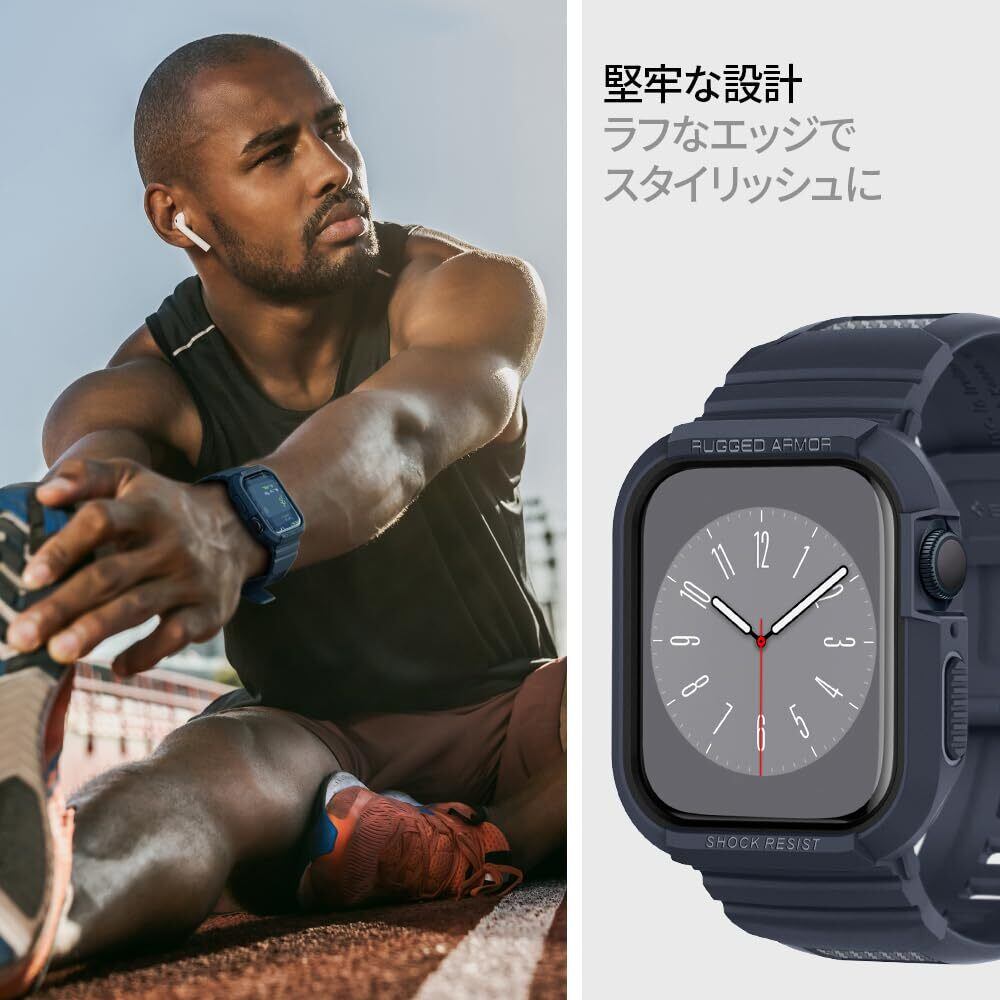 Spigen Apple Watch 45mm | 44mm 一体型 バンド ケース 【 Apple Watch 9 / 8 / 7 / SE2 / SE / 6 / 5 / 4 対応 】 カバー 耐衝撃 PC TPU 二重構造 スポーツバンド 落下 衝撃 吸収 耐久性 傷防止 ラギッド・アーマー・プロ ACS00819 (チャコール・グレー)