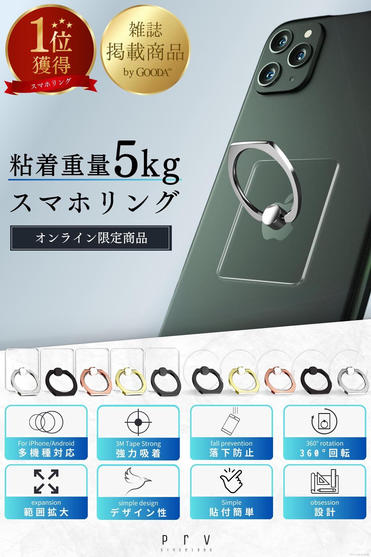 Prv【 雑誌掲載商品! 粘着重量5kg スマホリング クリア 】 粘着力最強 3Mテープ バンカーリング 緩くなりにくい リング強度最強 透明 薄型 ホールドリング 落下防止リング スタンド機能 タブレットリング 360回転 車 お風呂のフックにも使用可能 使い方は無限大 強力粘着テープ付き (スクエア/シルバー)
