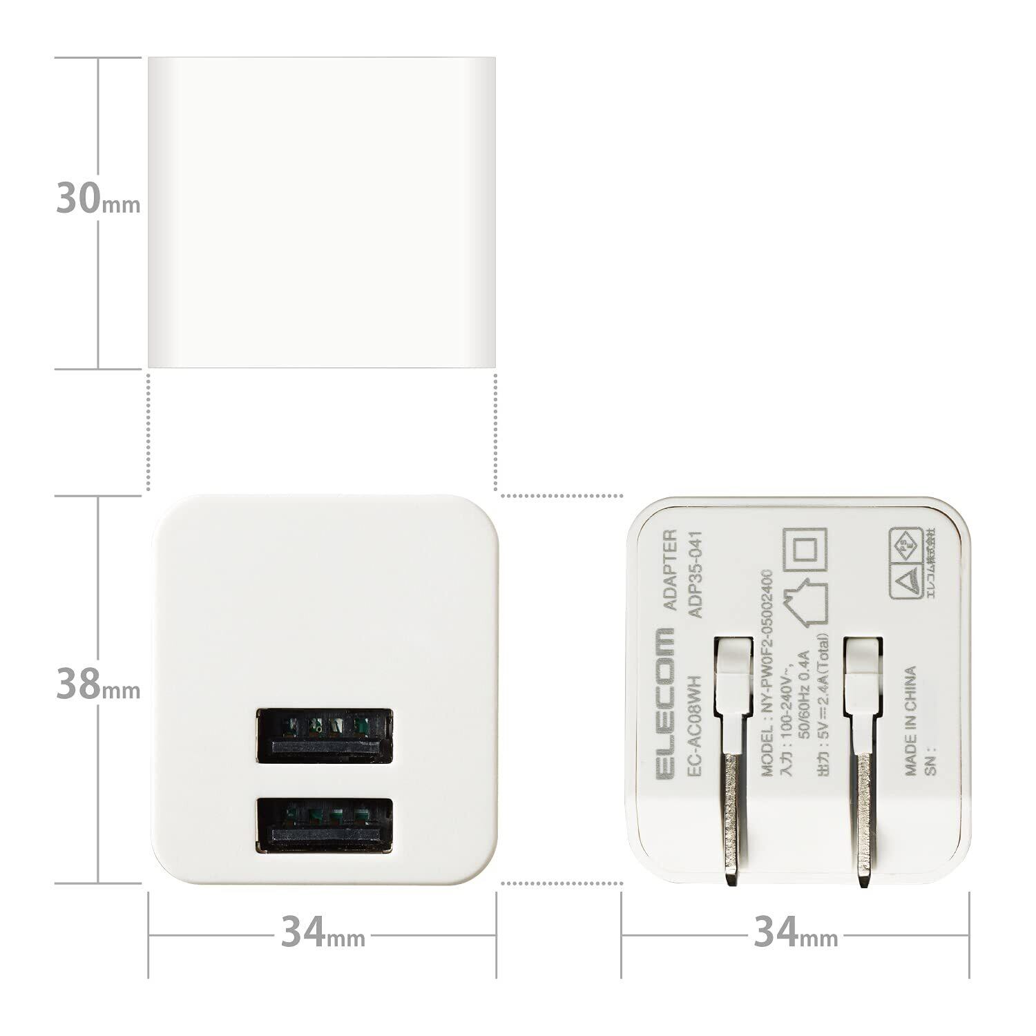 エレコム 【2個セット】 充電器 USB コンセント 12W 2ポート USB-A 折りたたみ式プラグ 2台同時充電 おまかせ充電対応 小型 軽量 【 iPhone SE3/15/14/13/12/Android 各種対応】 ホワイト EC-AC08WH