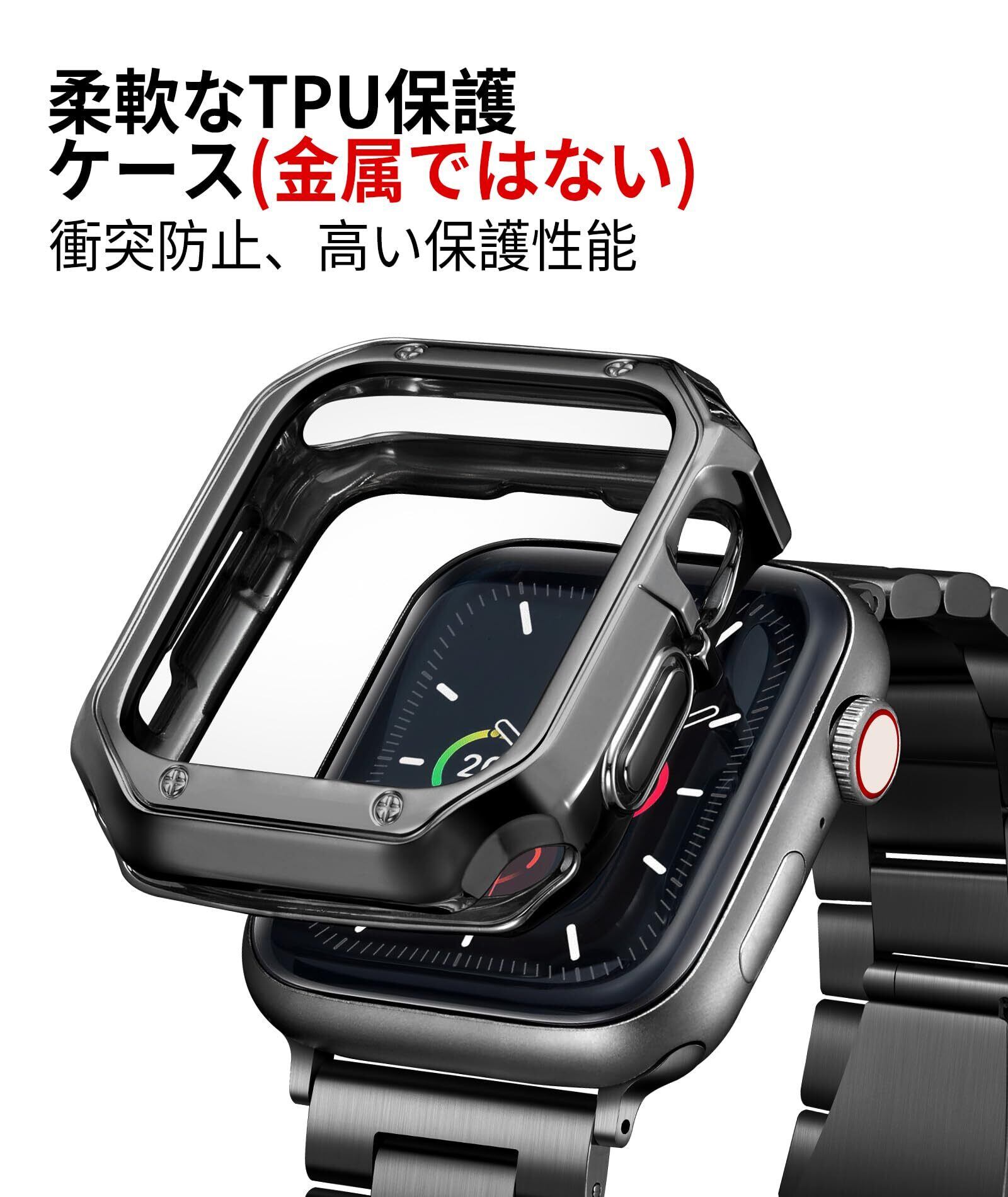 コンパチブル Apple Watch バンド 46mm 45mm 44mm 42mm 41mm 40mm 38mm コンパチブル アップルウォッチバンド ステンレス ブラック ポリッシュTPUケース コンパチブルiWatch ベルト Series 10/9/8/7/SE2/SE/6/5/4/3/2/1(45mm/44mm/42mm)