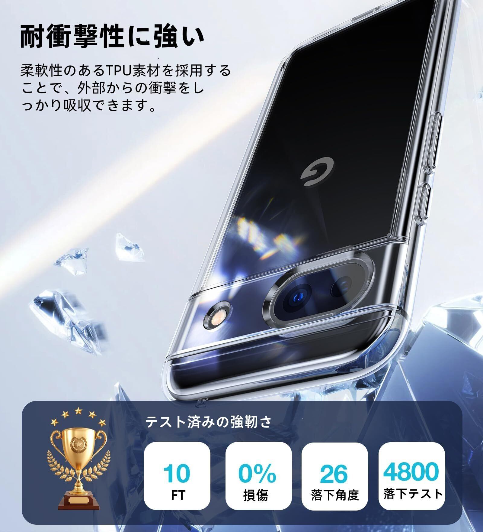 【全面保護】高品質のTPU素材を採用することで、外部からの衝撃をしっかり吸収できます。Googleピクセル8aケースはカメラより1ミリ高く、日常生活でのさまざまな傷を避けることができます。落としたり、ぶつけたりしても心配ありません。9Hガラスの画面保護フィルム1枚が付属しています。スクリーンを傷から守りながら、オリジナルの画面解像度を完璧に維持することができます。