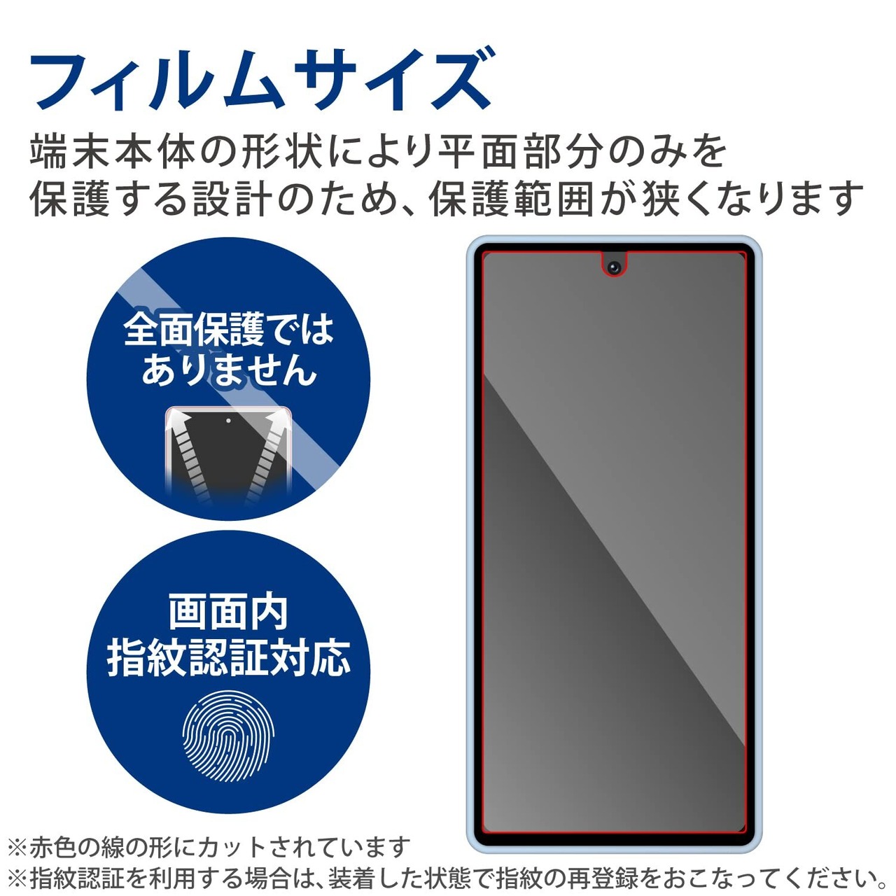 ■フィルムを装着した状態でも、画面内指紋認証に対応します。 ※フィルムを装着した状態で画面内指紋認証機能を利用する場合は、装着した状態で指紋の再登録を行ってください。
