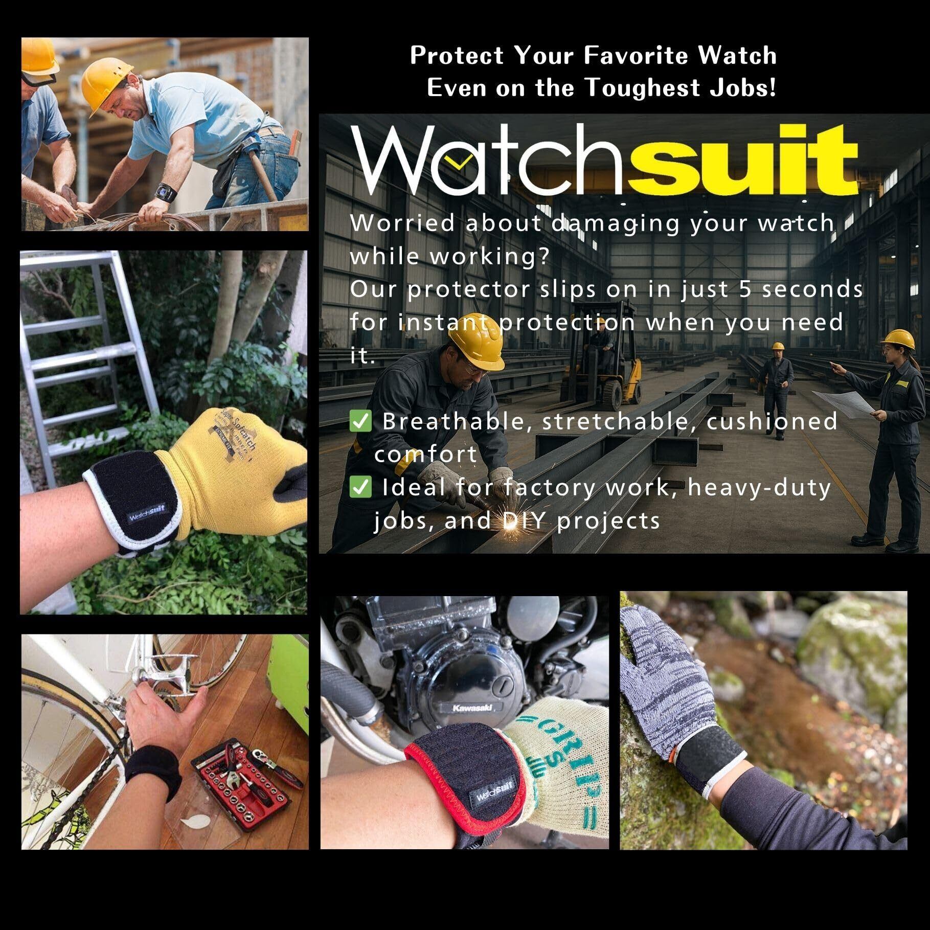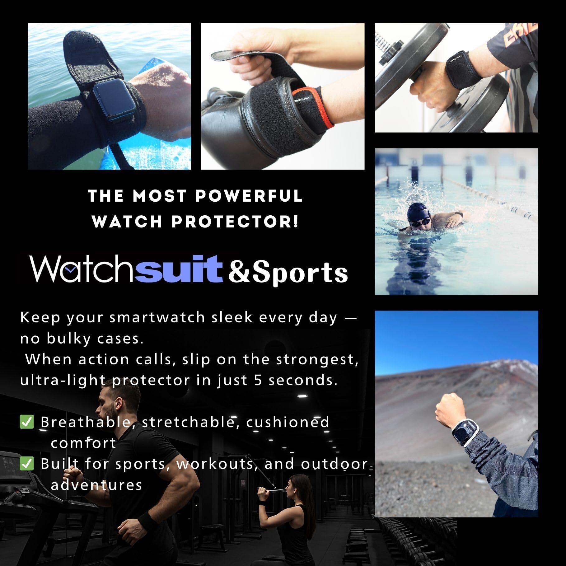 《Watchsuit黒/黒紺》腕時計やスマートウォッチを5秒で簡単装着する最強の保護プロテクター、Apple Watch・GARMIN・Fitbitを仕事やスポーツ、プールで強力にカバー、信頼のメイドインジャパン40mm/42mm/44mm/45mm/49mm対応