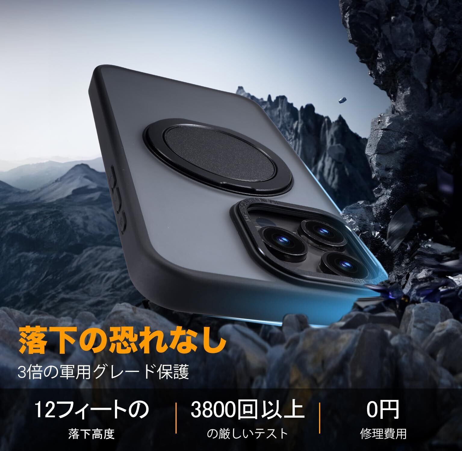 【数量限定】【MagSafe対応・スタンド付き】Mcoifull iPhone 15 Pro Max用ケース、マグネット搭載、ワイヤレス充電対応、耐衝撃、マット感、半透明、指紋防止、アジャスタブルスタンド、ブラック | impsmile