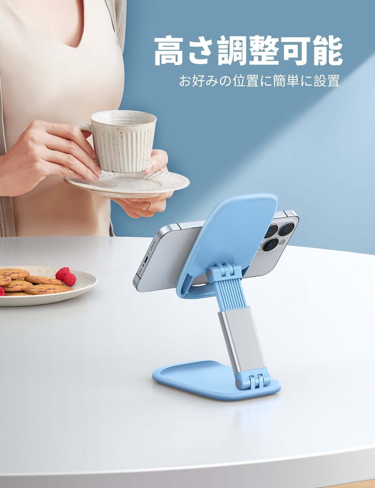 Lamicall 折り畳み 高さ調整 スマホスタンド 伸縮 : スマートフォン 角度 折りたたみ 携帯 アイホン 立て 置き 台 卓上 机 つくえ テーブル デスク 縦 横 滑り止め コンパクト アイフォン スマフォ アンドロイド iPhone 16 15 14 plus pro promax 13 mini 12 11 プロ マックス se Huawei Xperia android に対応 青