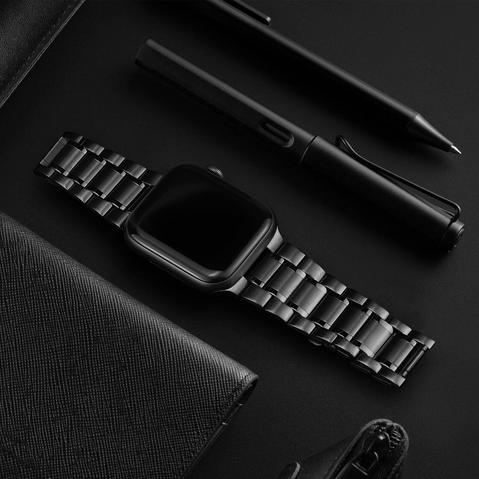 [HITZEE] メタル Band コンパチブル Apple Watch バンド 49mm 46mm (シリーズ 10) 45mm 44mm 42mm(シリーズ 3/2/1) ステンレススチール製交換用メンズ/レディースバンド Apple Watch Ultra 2 シリーズ 10 9 8 7 SE2/SE 6 5 4 3 2 1 に対応 (黒)