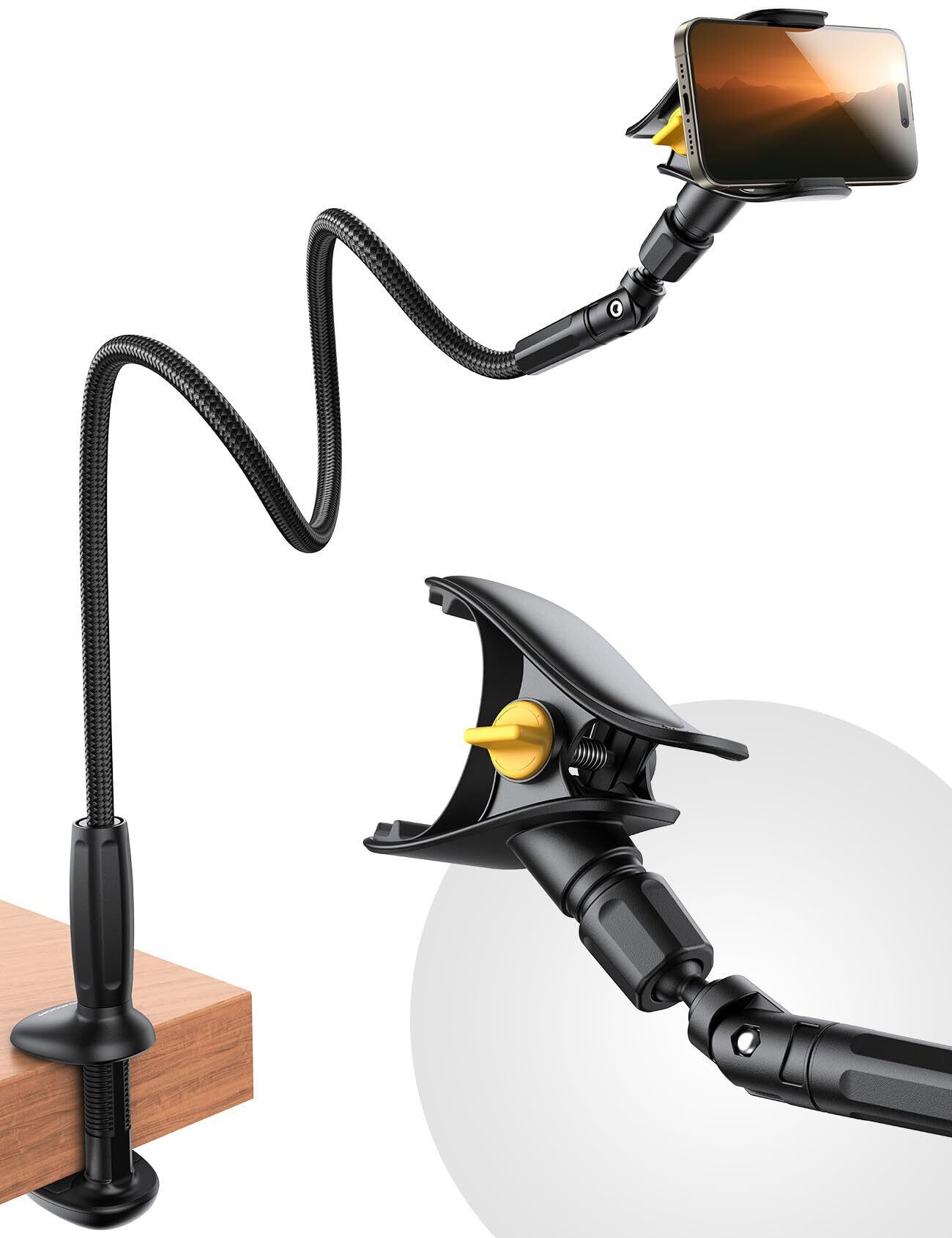 【業界初!革新的な安定ロック】 Joyroom スマホアームスタンド スマホホルダー 寝ながらスマホに最適!720°全方位回転 【ナイロン編み+金属アーム】 安定ロック付きクリップでスマホをしっかり固定 落下防止 iPhone Xperia Galaxy Android 全機種対応(7インチ以下) ブラック