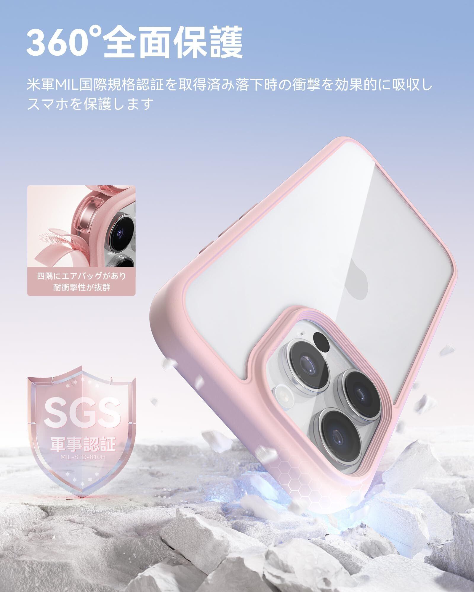 【2022最新】NIMASO iPhone16Pro用ケース クリア 黄変防止 耐衝撃 米軍MIL規格 SGS認証 PC背面 いPhone16Pro対応 傷つけ防止 超薄型 軽量 ワイヤレス充電対応 ストラップホール付き アイフォン16プロ対応 (6.3インチ)スマホケース(氷星シリーズ)ピンク NSC24G1472 | impsmile