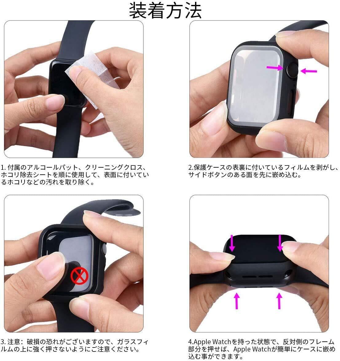 【高級感が溢れるデザイン&装着が簡単】 Apple Watchガラスフィルム+保護カバーの融合された革新的な一体型デザイン。取付け道具不要、本体の上から嵌めるだけで楽に装着できます。従来のフィルム貼りの手間も省けます。