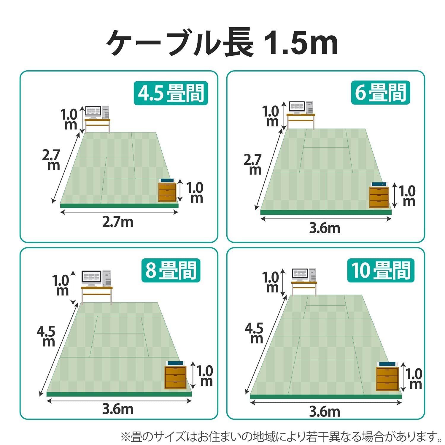 壁面のコンセントに接続してもゆとりのあるケーブル長1.5mです。
