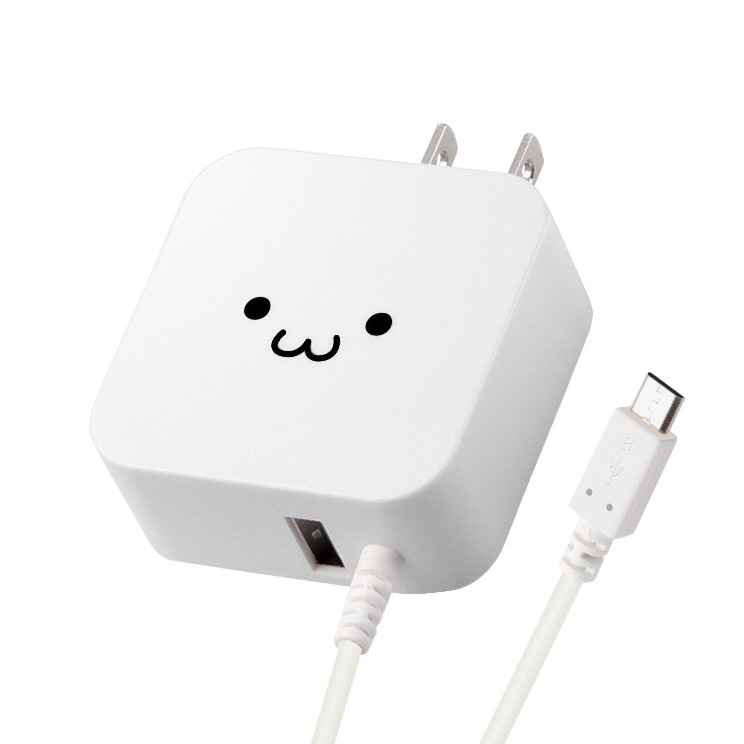 エレコム AC充電器/microBケーブル一体型/2.4A出力/1.5m/ホワイトフェイス