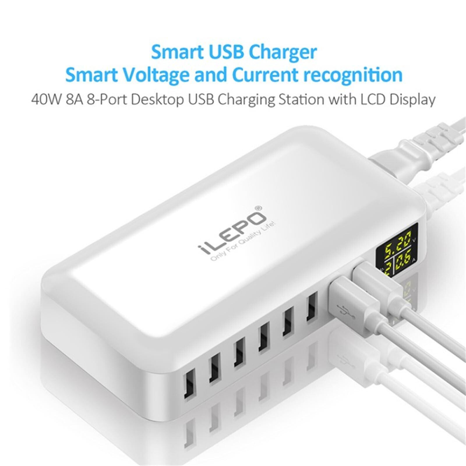 iLepo 知能USB充電器 usb ハブ コンセント8ポート 合計40W LCD画面 ACアダプター 複数 usb電源 急速充電 電源タップ チャージャー iPhone/iPad/Android 等のUSB機器対応