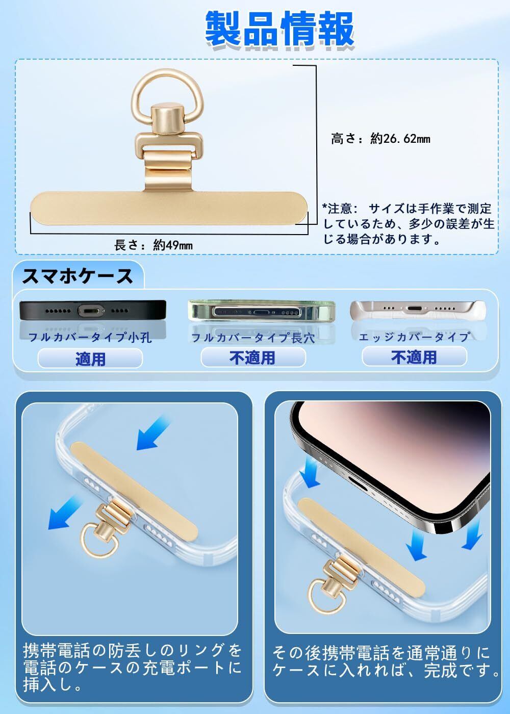 KASELIN スマホ ストラップホルダー 360°旋回式/極薄0.2mm/浮きなし曲がれ設計/金属製タグパッチ ステンレス鋼 耐久性 軽量 薄型 携帯ストラップホルダー スマホケースに挟む 落下紛失防止 充電影響なし 全機種対応 ゴールド