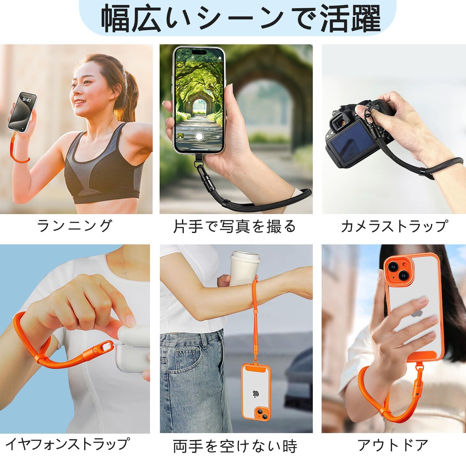 【使いやすい】全長約32cm、ストラップの太さ約7mm;調節ボタン付きでハンドストラップの長さを調整可能です。360°回転し、使いやすさも抜群です。さらに、手触りが柔らかく重量は24gで手首に負担になりません。