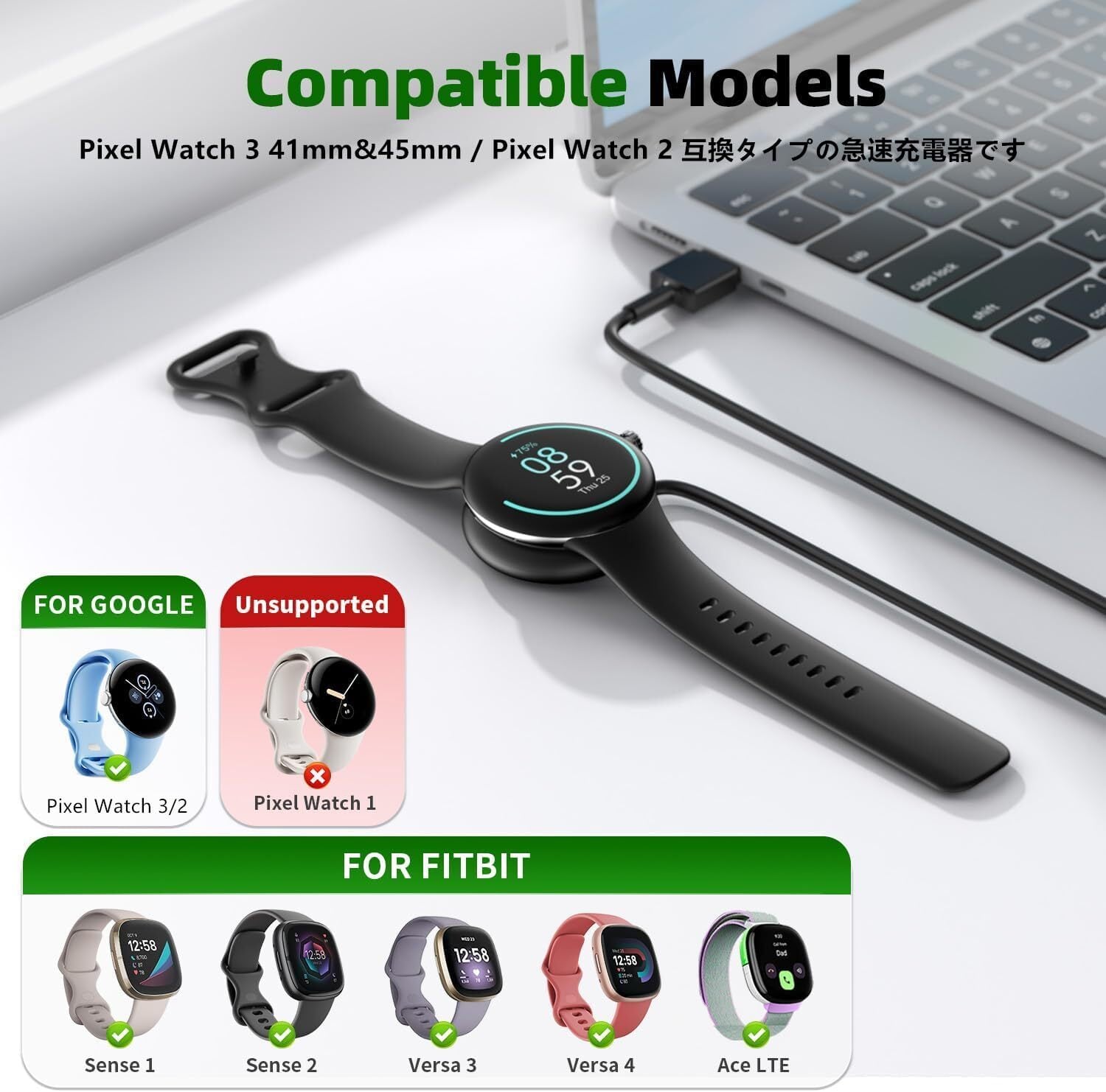 【対応機種】Google Pixel Watch 3/3 XL/Pixel Watch 2/Fitbit Sense 2/Sense/Versa 4/Versa 3用に特別に設計された充電ケーブルで、スマートウォッチに必要なアクセサリーです。注意:他のFitbit WatchとPixel Watch 1には対応しておりません。