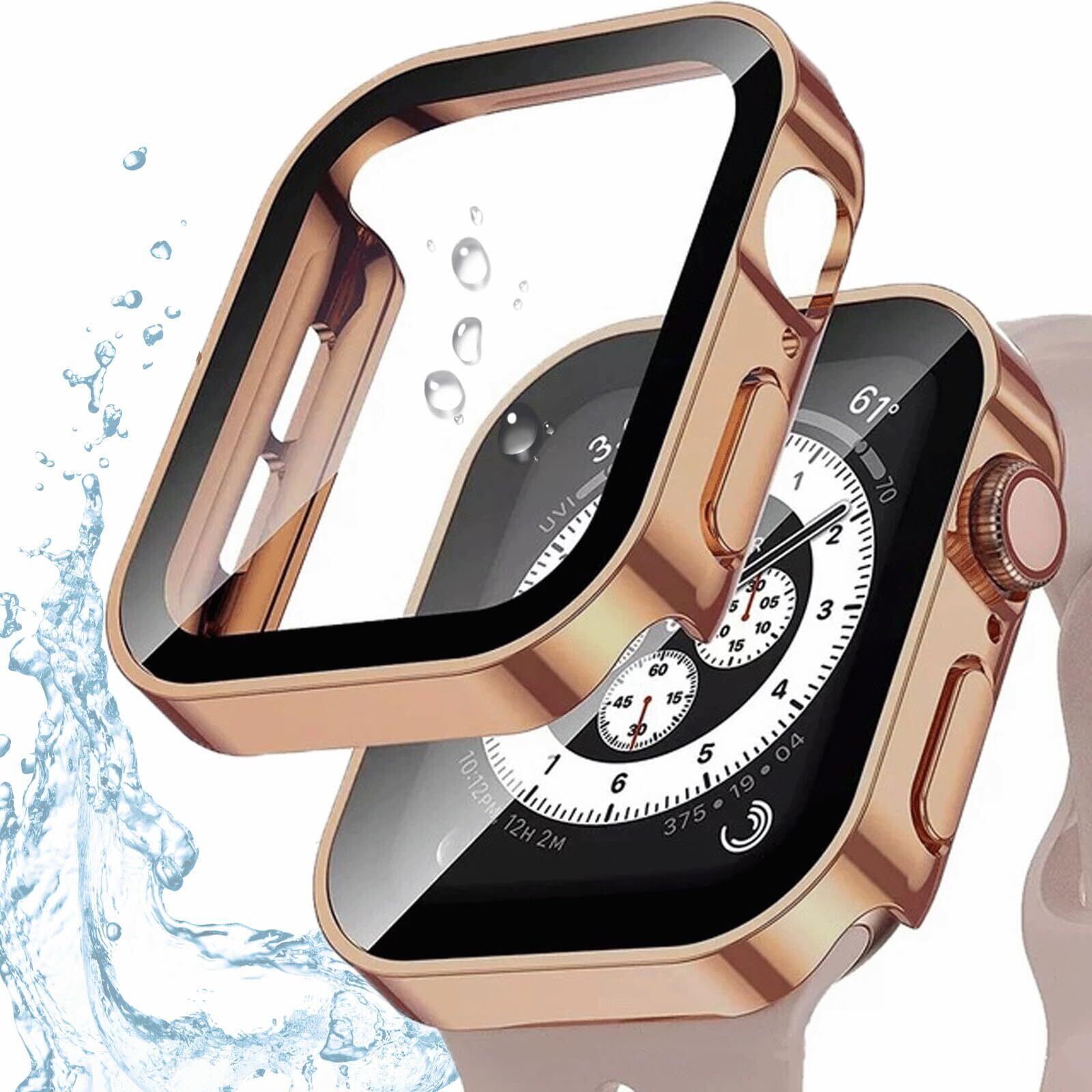 AIYYXX アップルウォッチ カバー40mm 44mm 41mm 45mm対応 アップルウォッチ 本体 防水 一体型 新デザイン 3D直角エッジ 超薄型 PC+ガラス素材 高透過率apple watch カバーキズ防止 簡単に取り付け・取 全面保護 apple watch ケース(40mm,光沢防水のローズゴールド)