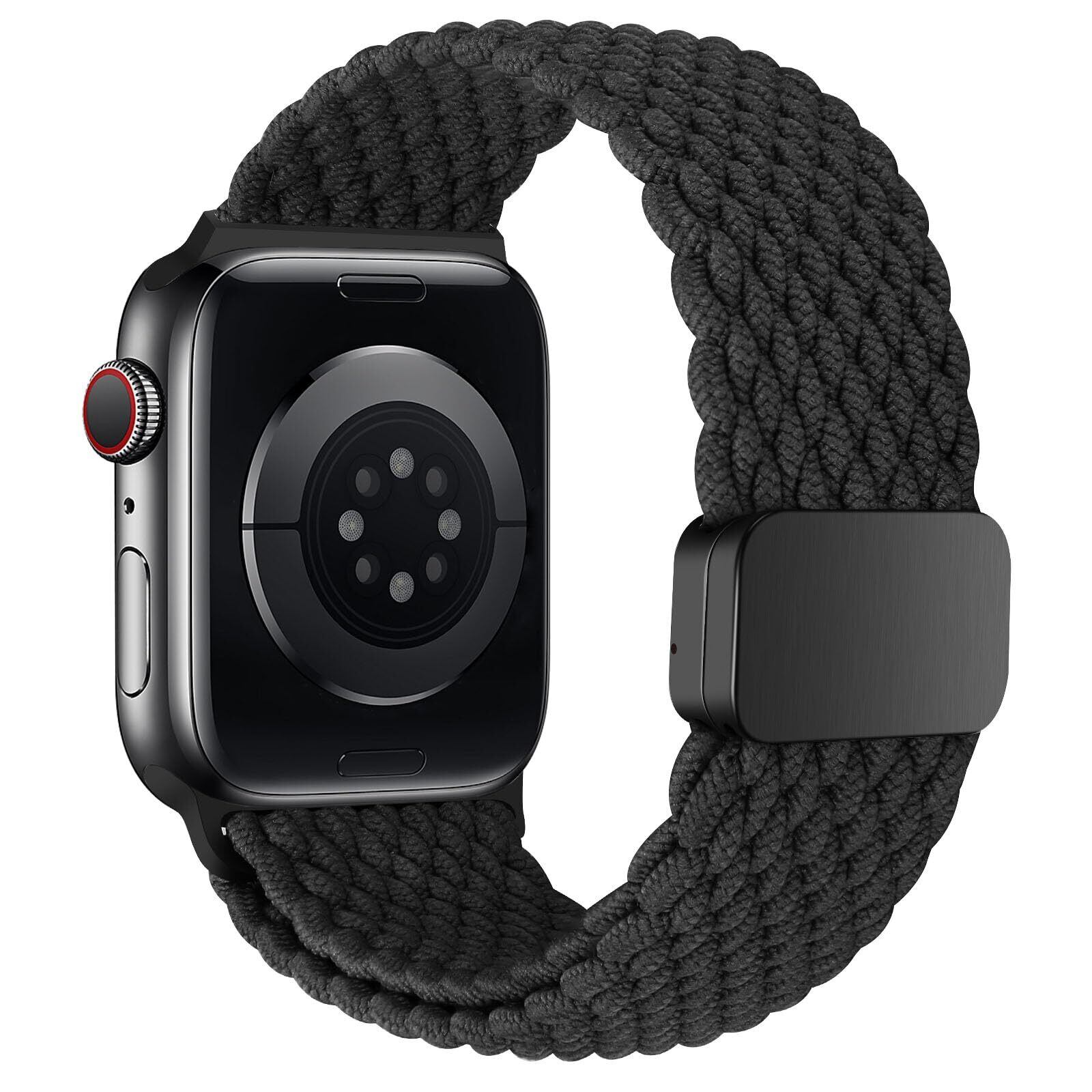 [HITZEE] Band コンパチブル Apple Watch バンド 49/46/45/44/42/41/40/38mm、磁気留め金付きのナイロン弾性編組バンド調節可能なスポーツアップルウォッチバンド付き Apple Watch Ultra 2 Ultraシリーズ 10 9 8 7 SE 6 5 4 3 2 1 に対応(42/44/45/46/49mm,黒)