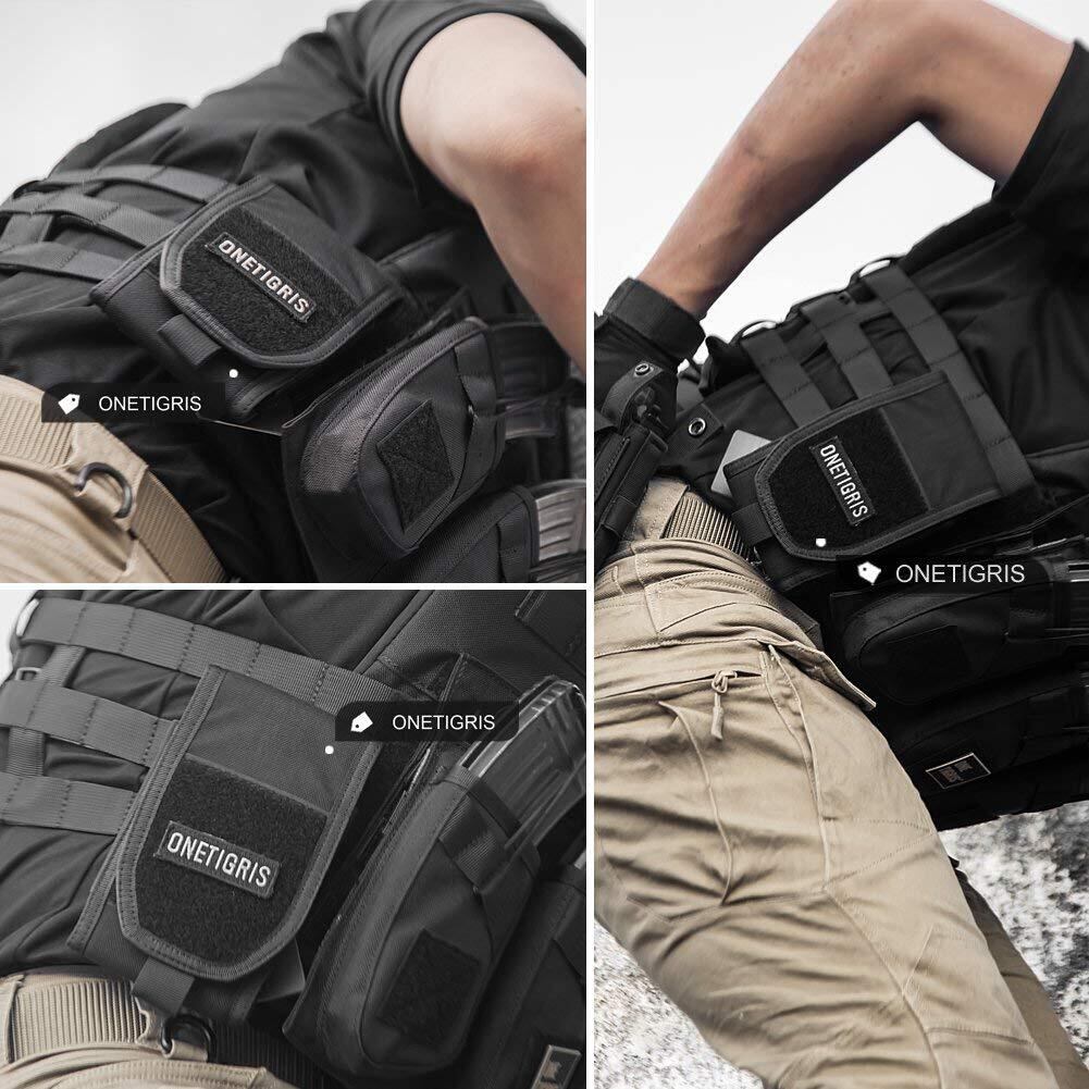 OneTigris米軍スマートフォンポーチ iPhone15/14/13/12/11/Pro/Max/plus Sony xperia Galaxy など同じ(5.5-6.9)インチスマホ対応 粘着的なファスナー仕様 MOLLE装備に着装可能ベルト固定式ポーチ シリコンケース&手帳型ケース スマホポーチ デジタルカメラケース オリジナル ウエストポーチ (ブラック)