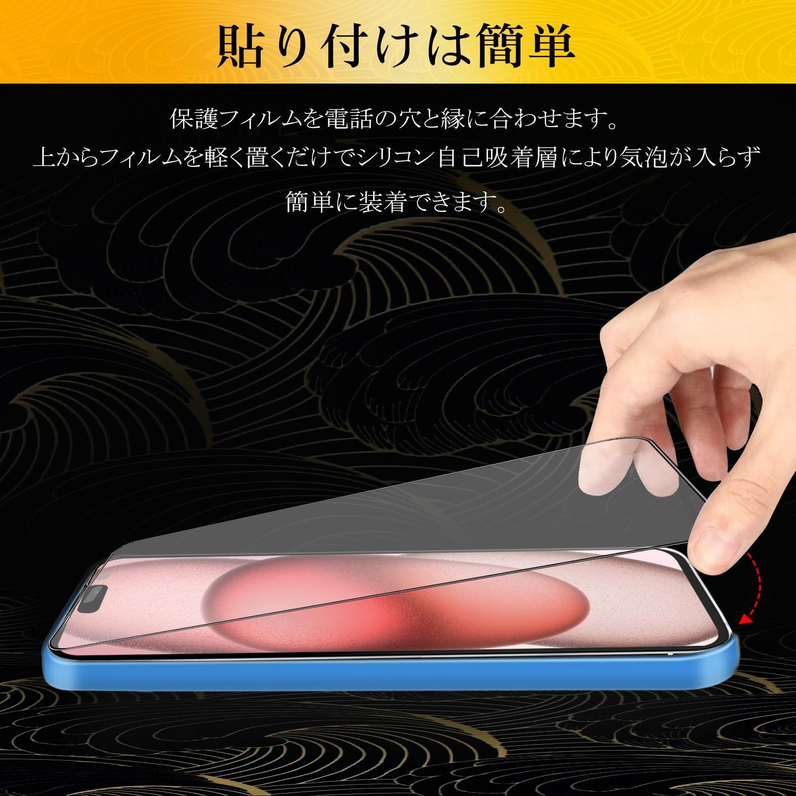 【 アンチグレア 】 iPhone15Pro 用 ガラスフィルム さらさら アイフォン15プロ 用 フィルム 液晶 保護 強化ガラス ゲーム用 タッチ感 (6.1インチ)【反射防止/指紋防止/気泡ゼロ/貼り付け簡単/ガイド枠付き/2枚セット】