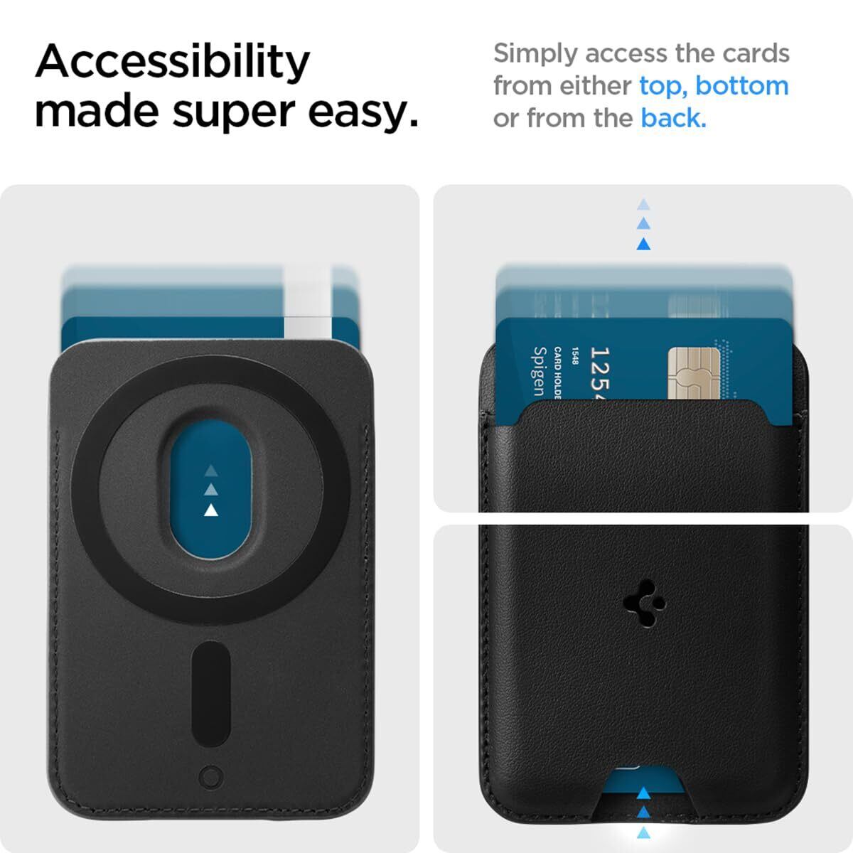 Spigen MagSafe対応 カードケース マグネット内蔵 高級レザー 磁気シールド スリム 背面 ウォレット iPhone 14/13/12 対応 スマホ マグネット付着 交通系 ICカード バレンティヌス マグフィット AMP02284 (ブラック)