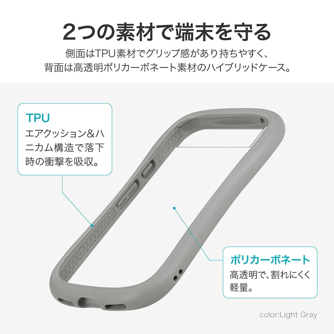 【耐衝撃】 衝撃を吸収・分散するハニカム構造のTPUと、割れにくく軽量なPCのハイブリッドケース