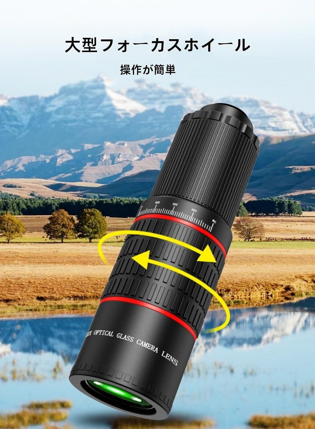 【18倍HD 単眼鏡 高倍率 望遠レンズ】18XHDスマホ ボウエンレンズ、遠い景色をより近づけて、クリアな写真が撮れるスマホ レンズ。望遠レンズ スマホでは、遠い景色を撮影しても画質が劣化することなく手軽に遠距離の被写体を撮影できます。22X 望遠レンズを使用する時は、モバイル画面に触れてフォーカスを調整しないでください。カメラのメインカメラが変更する可能があります。【定点観測も可能】旅行先やお子様の行事等で大活躍!三脚・スマホ固定クリップ等必要な付属品は全て揃っております!アイキャップを付けると単眼望遠鏡として使えます。【軽さは力 脅威の96g】手のひらサイズは持ちやすい、片手で持つこともできます。一つ手は望遠レンズ、一つ手は応援ライト! シェアに非常に便利な品です。