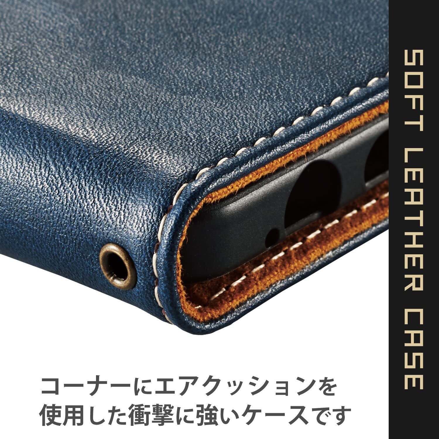 エレコム AQUOS sense6s (SHG07) / sense6 (SH-54B SHG05) ケース カバー レザー TPU 手帳型 マグネット フラップ ステッチ 角エアクッション 耐衝撃 ストラップホール付 ネイビー PM-S221PLFYNV