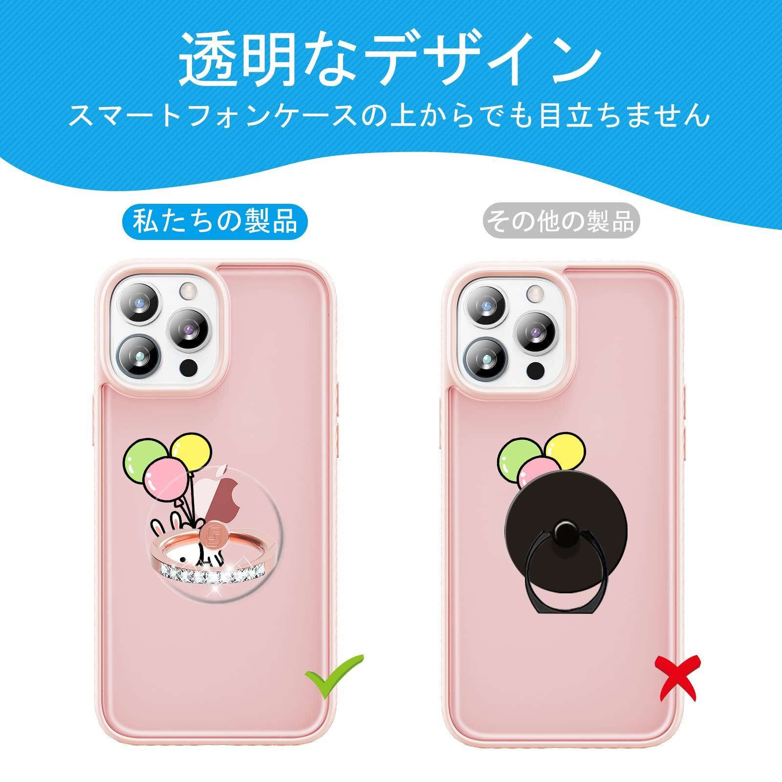 透明なデザイン:透明アクリルで構成されるスマホ リングーは、スマホが元々持つ独自のデザインを犠牲にすることなく、ホルダー機能を追加できます。