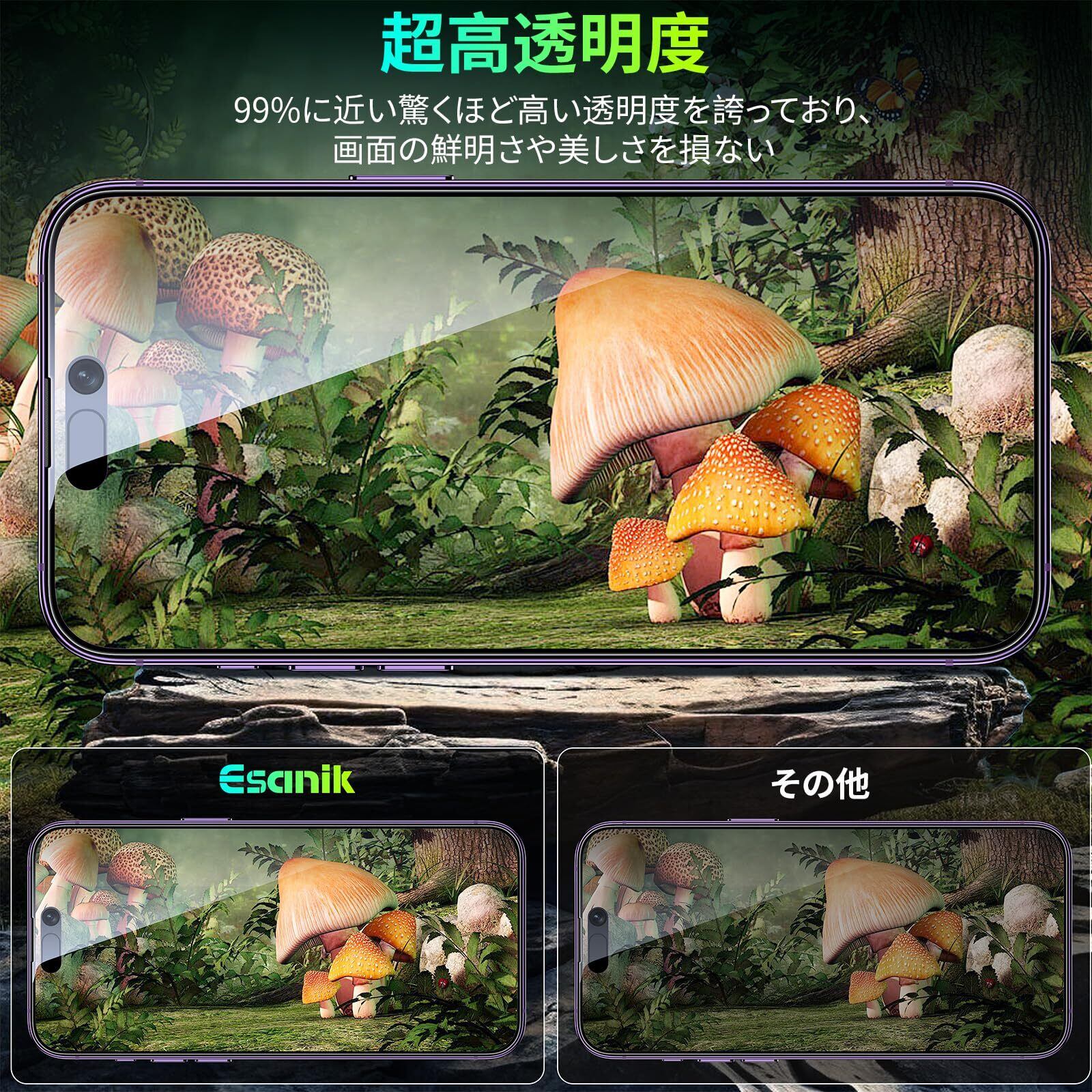 Esanik 360度 覗き見防止フィルム iPhone 14 Pro対応 ガラスフィルム 360°全方向 覗き見防止 保護フィルム ガイド枠付き 強化ガラス 硬度9H 指紋防止 飛散防止 上下左右 360°覗き見防止