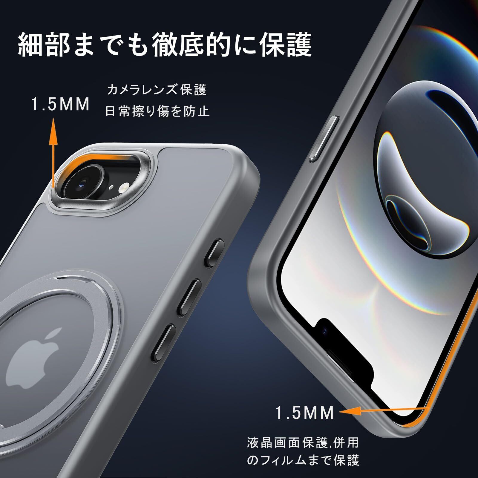 【人気商品】iPhone 16e 用 ケース Magsafe対応 アイフォン16e カバー 360°回転スタンド Uovon スマホケース アイホン16e 携帯ケース ワイヤレス充電 車載ホルダー 対応 半透明 指紋防止 黄変防止 ・ グレー | impsmile