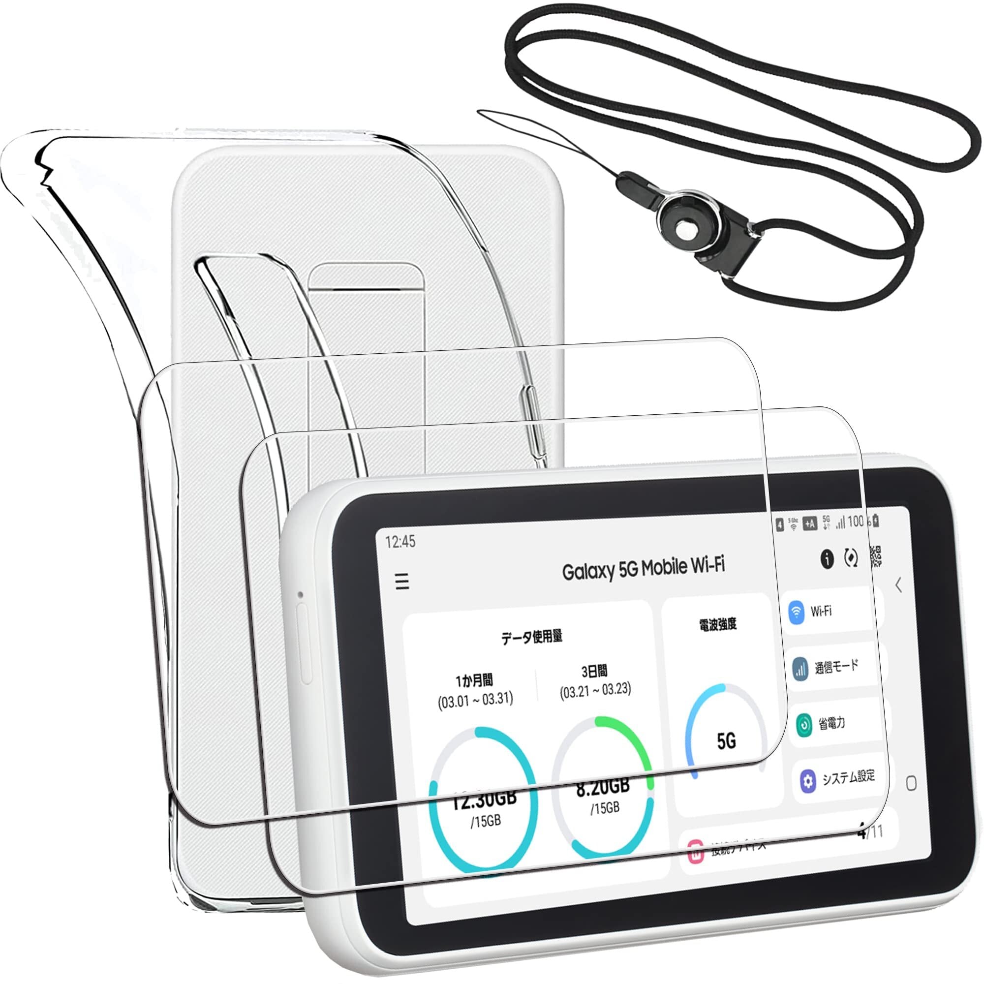 Nutmeg【フイルム&ケース2+1】Galaxy 5G Mobile Wi-Fi SCR01 用の ガラスフイルム 対応 Galaxy 5G Mobile Wi-Fi SCR01 用の ケース クリア 5G Mobile Wi-Fi SCR01 保護カバー 耐衝撃 SCR01 用の フイルム 指紋防止 気泡防止