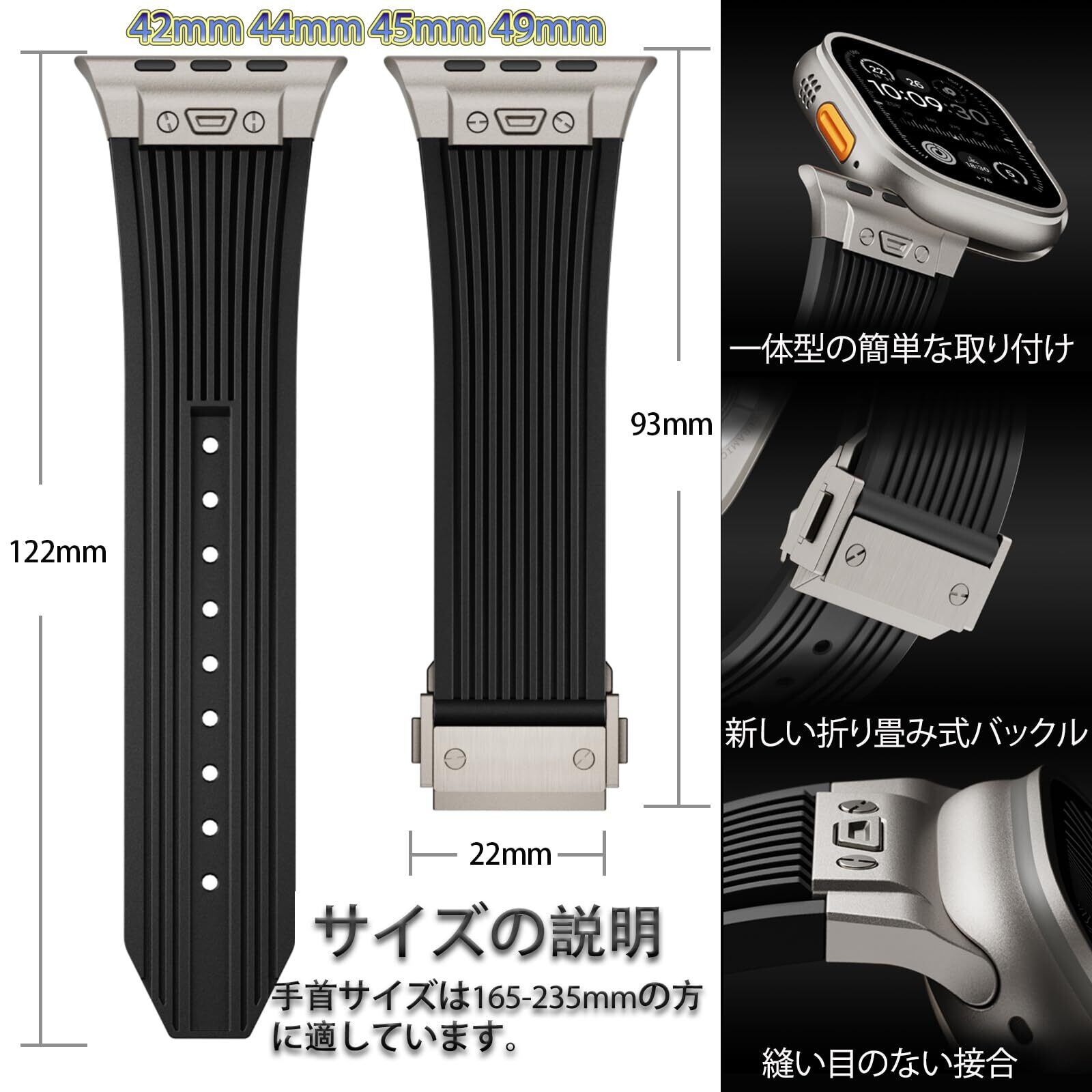 BinGeLi コンパチブル Apple Watch バンド 49mm 46mm 45mm 44mm 42mm アップルウォッチ スポーツ バンド シリコーン 交換用 高級ベルト 新型折りたたみ式バックル付き 耐衝撃 防水 防汗メンズ Watch Ultra2/Ultra Series 10 9 8 SE2 7 6 SE 5 4 3 2 1に対応