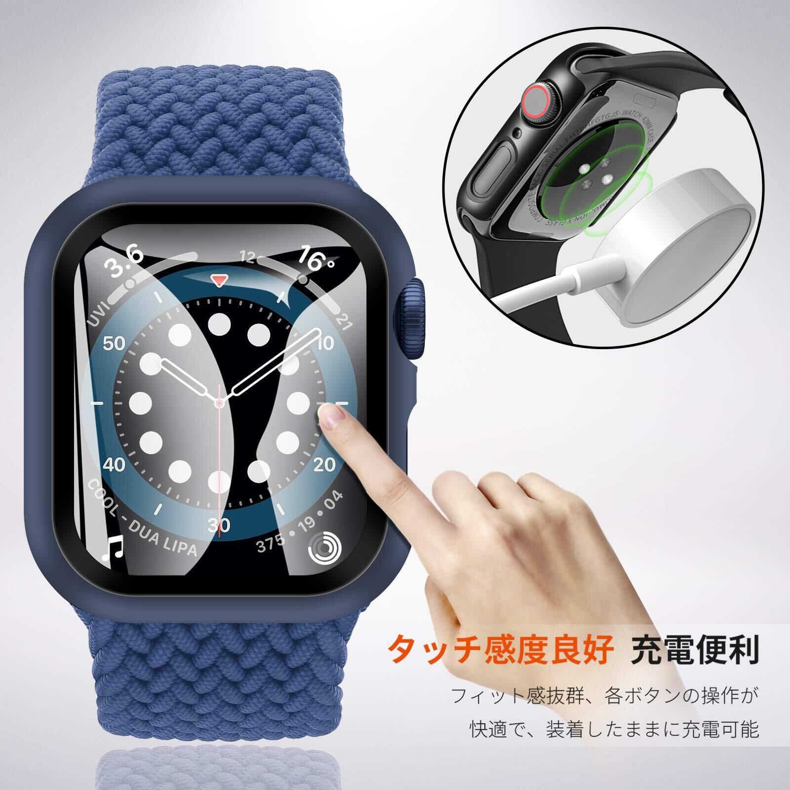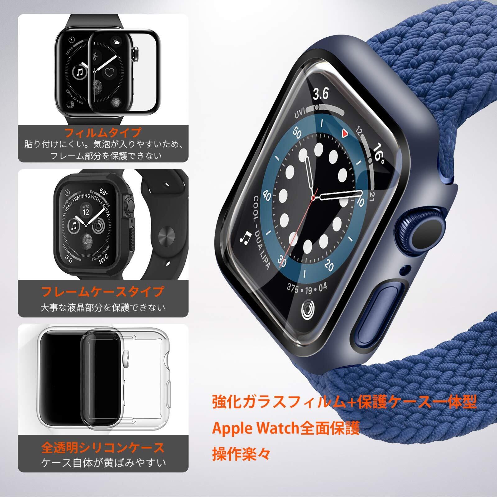 【高級感が溢れるデザイン&装着が簡単】 Apple Watchガラスフィルム+保護カバーの融合された革新的な一体型デザイン。取付け道具不要、本体の上から嵌めるだけで楽に装着できます。従来のフィルム貼りの手間も省けます。