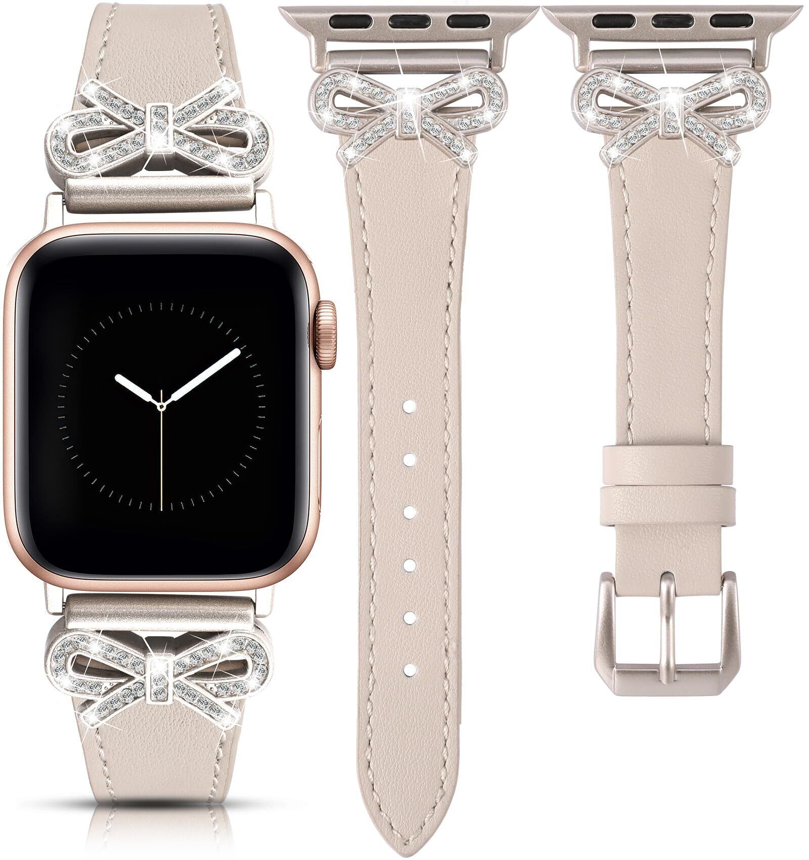 コンパチブル アップルウォッチ バンド apple watch バンド スマートウォッチ ベルト レディース 本革製 レザー 交換ベルト 柔らかい 38mm 40mm 41mm 49mm 46mm 45mm 44mm 42mm iWacth Ultra2/Series10/9/8/7/6/5/4/3/2/1/SEに対応 蝶ネクタイ柄 キラキラ 新年/クリスマス/バレンタインデー/誕生日プレゼント