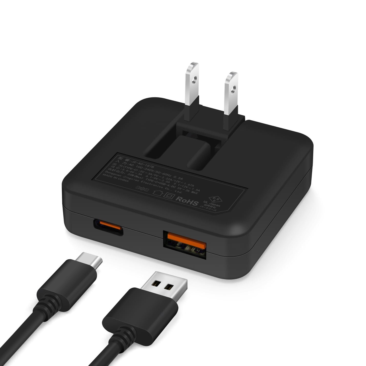 【新型USB-CとUSB -A両対応】USB充電器 Type-C PD20w&&QC3.0急速充電(1.6cm超薄型/2ポート/折畳式プラグ) スマホ ACアダプター コンパクト コンセント PSE認証済 iPhone15対応/iPad/Android&iOSなど対応(ブラック)