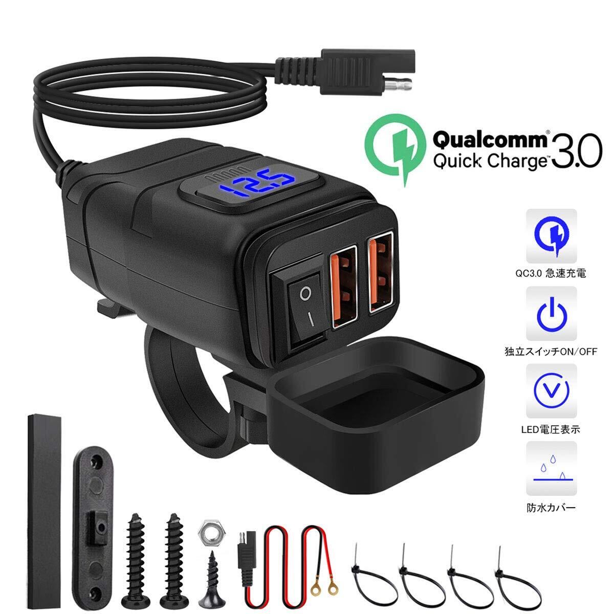 【特価セール】XBERSTAR バイク USB電源 USB充電器 車載充電器 防水 2ポートType-c電源 急速充電 電圧計付 安全ON/OFFスイッチ付 QC3.0過圧保護 2つのインストール方法 取付簡単 1つのSAEソケット+1メートルのダブルSAEソケットケーブル【対応携帯電話、タブレット、ナビゲーション、GPS】 (ブラック) | impsmile