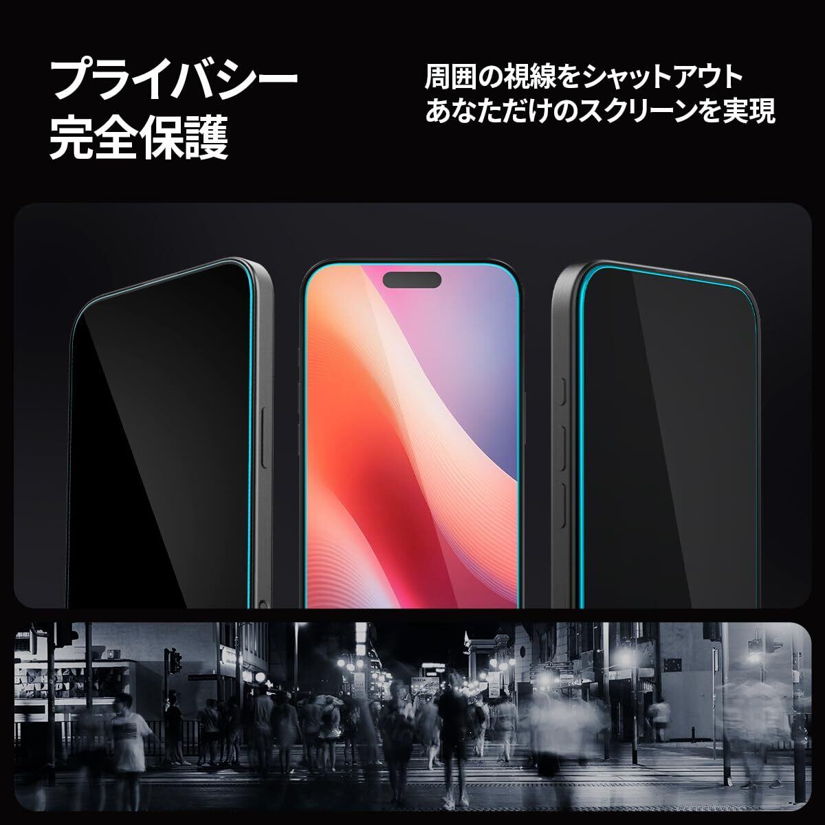 Spigen iPhone 16 Pro ガラスフィルム 覗き見防止 9H硬度強化ガラス 貼り付けキット付き iPhone16Pro対応 プライバシー ナノコーティング 飛散防止 2枚入 EZ Fit