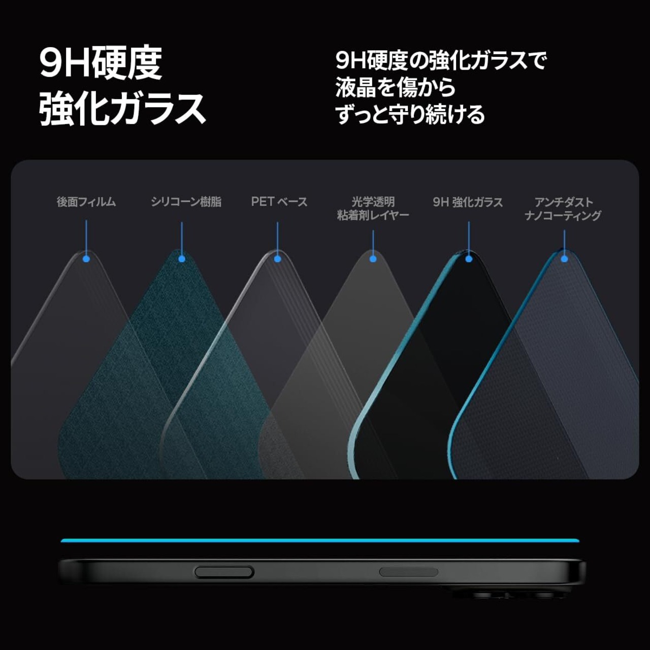 [ナノコーティング・飛散防止 ] 表面のナノコーティングが指紋や汚れを防ぎます。汚れが付きにくいため、指滑りがスムーズな触り心地が特徴です。飛散防止処理を行っており、保護フィルムが割れた際にもけがの心配はしなくてもよし。