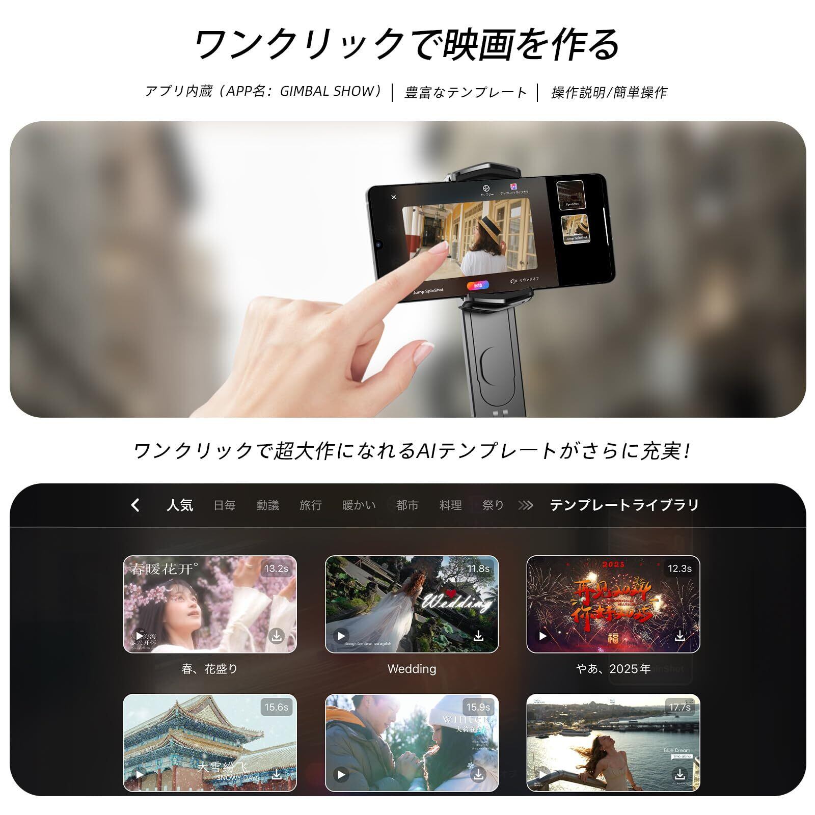 【手ぶれ防止1軸ジンバルスタビライザー】強力なモーションジャイロスコープ、高精度モーター制御、独自の手ぶれ安定化および自動バランス技術により、携帯電話の安定性を確保し、同時に撮影時の手ぶれの問題を解決します。携帯電話で写真を撮るときに、写真がぼやけることを心配する必要はありません。ビデオ会議、旅行、Vlog、Youtube、Tiktok、ライブブロードキャストなどに非常に適しています。